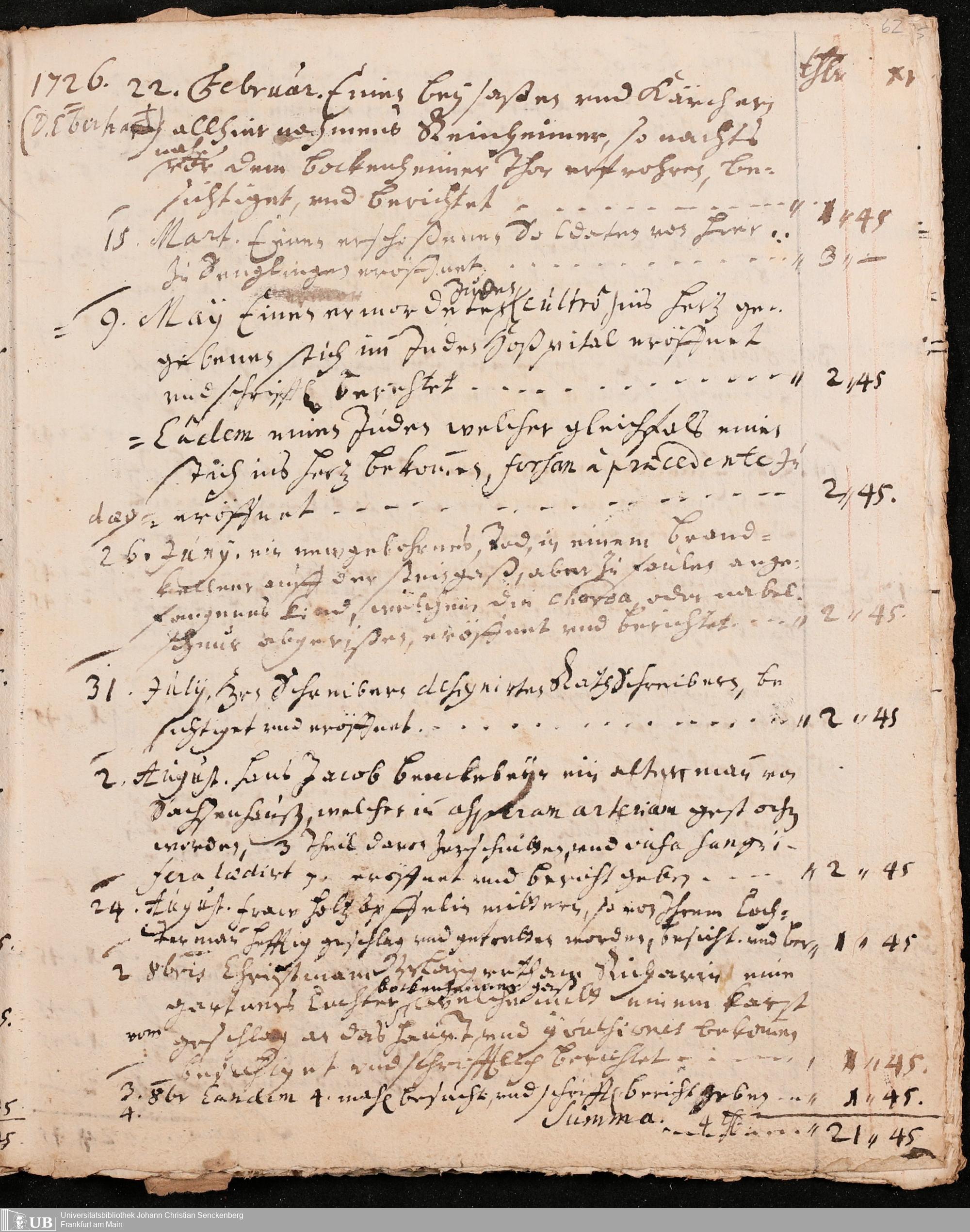 Na 31 Nachlass Johann Christian Senckenberg, 422 - Physicatsarbeiten