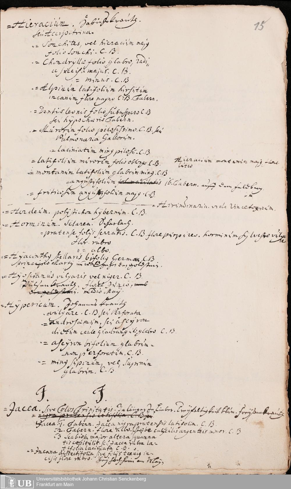 Na 31 Nachlass Johann Christian Senckenberg, 430 - Botanische Schriften Hartmann Senckenbergs