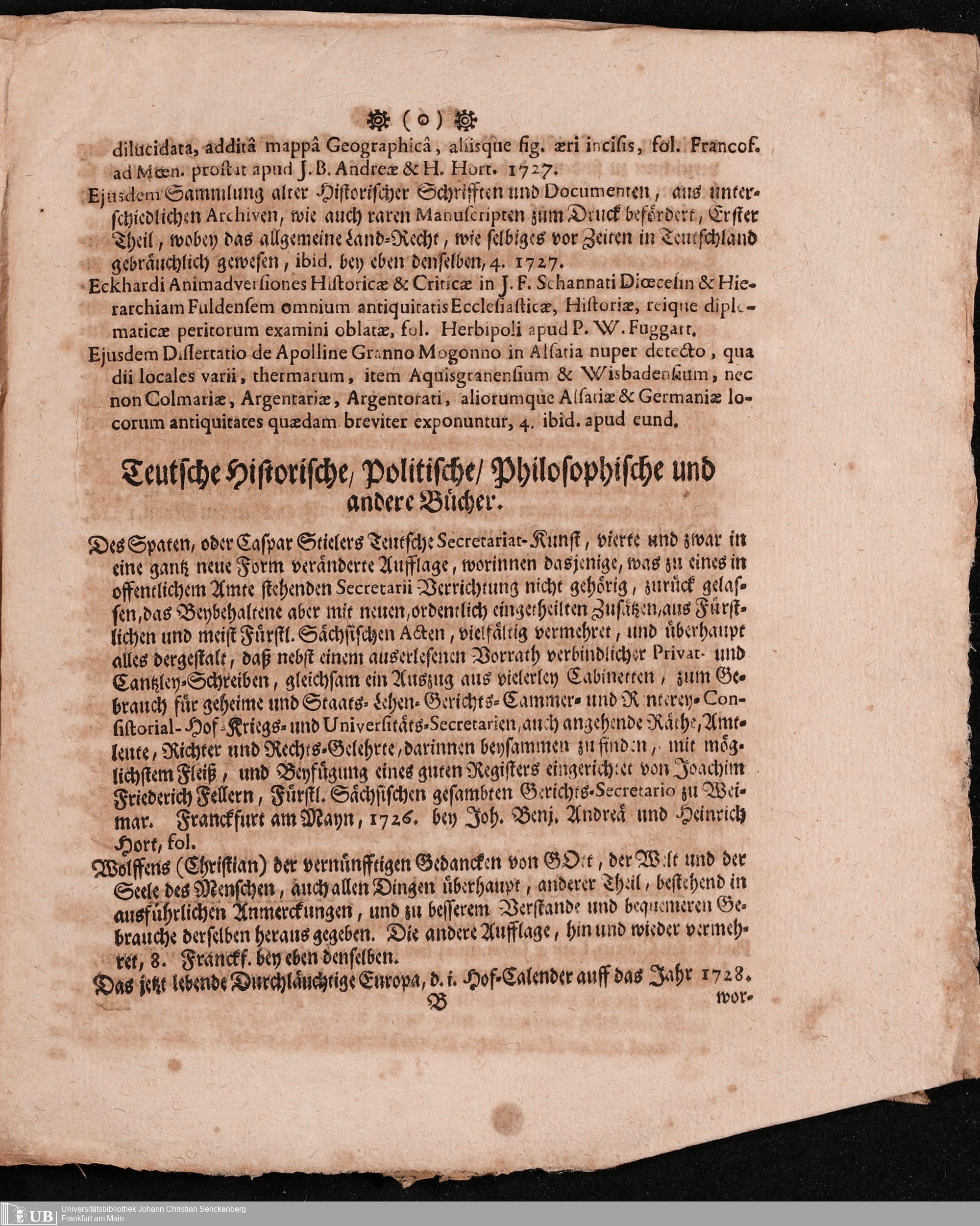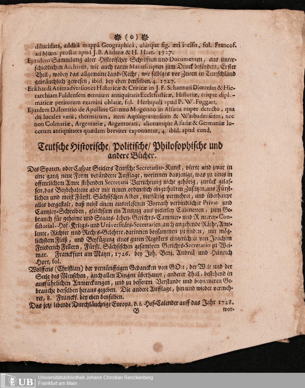 Na 31 Nachlass Johann Christian Senckenberg, 431 - Sammlung von Druckschriften und Abschriften aus der Studienzeit Hartmann Senckenbergs