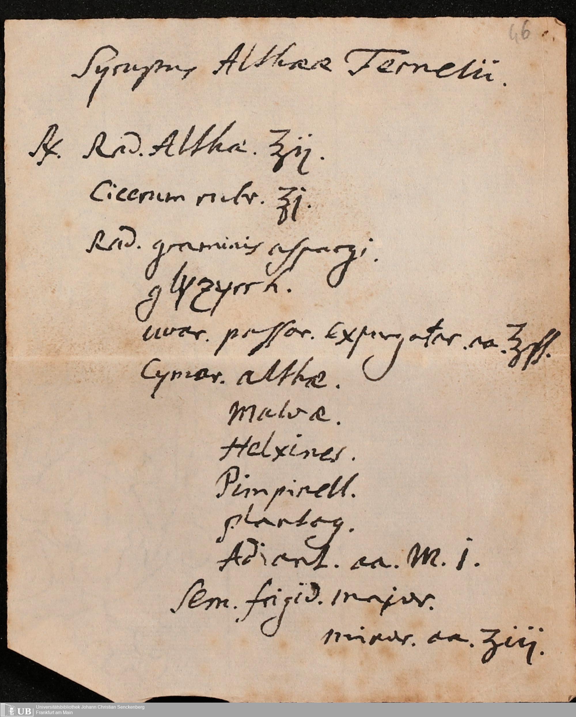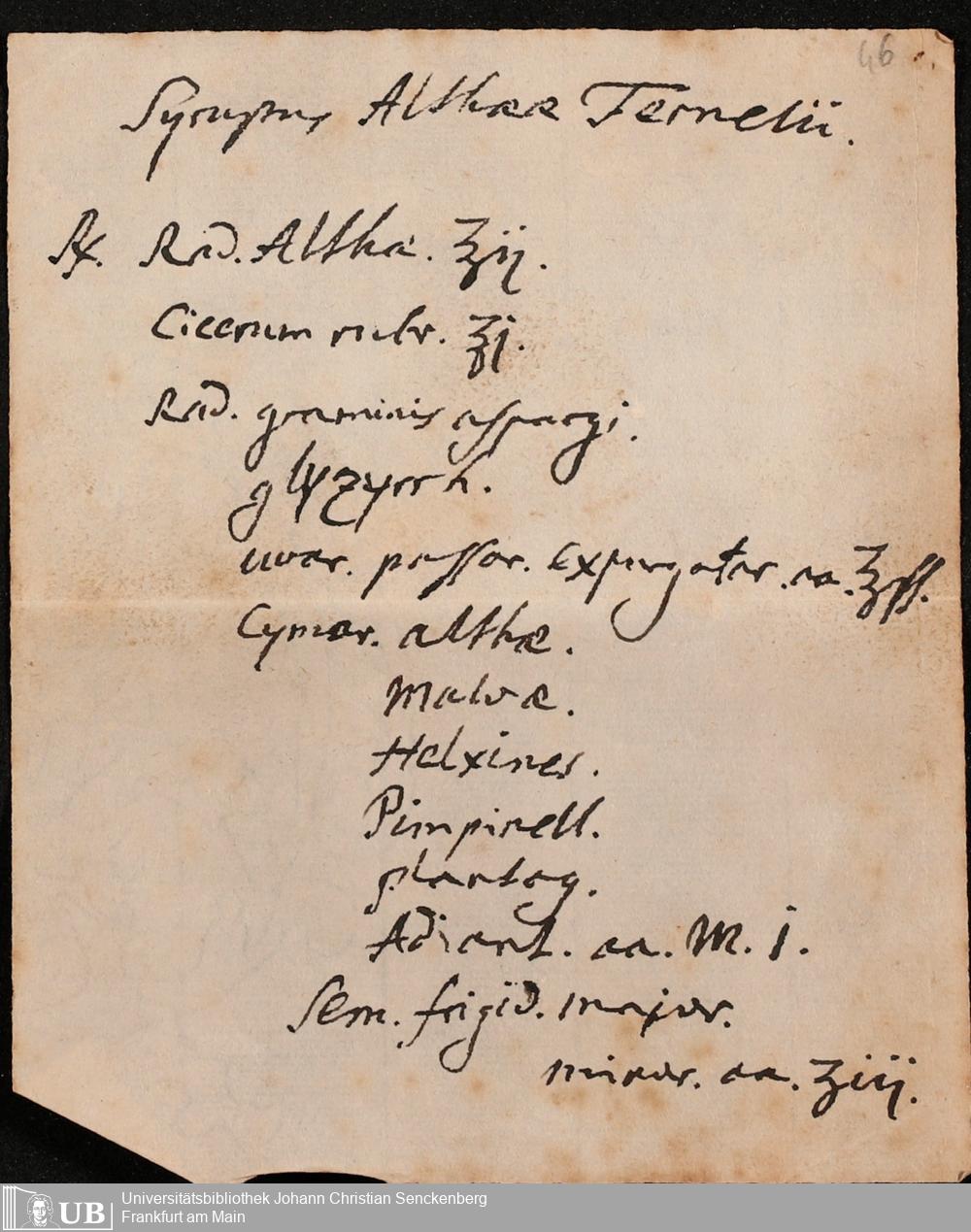 Na 31 Nachlass Johann Christian Senckenberg, 432 - Medizinische Manuskripte Hartmann Senckenbergs