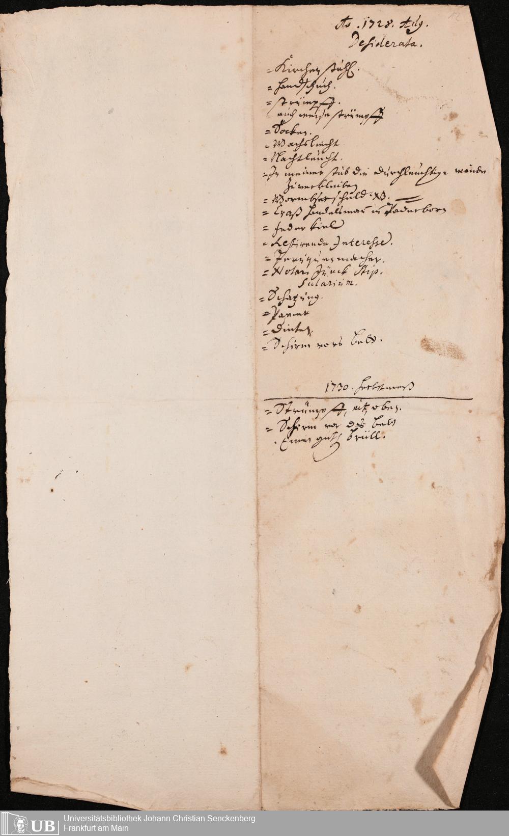 Na 31 Nachlass Johann Christian Senckenberg, 433 - Notizzettel und kleine Konzepte