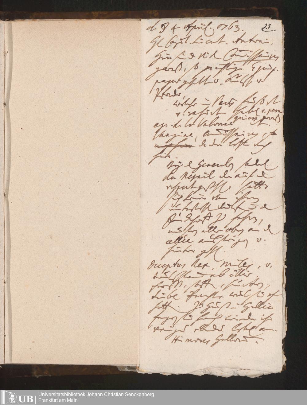 45 (1763) [Nichtärztliches Tagebuch: April - Dezember 1763]