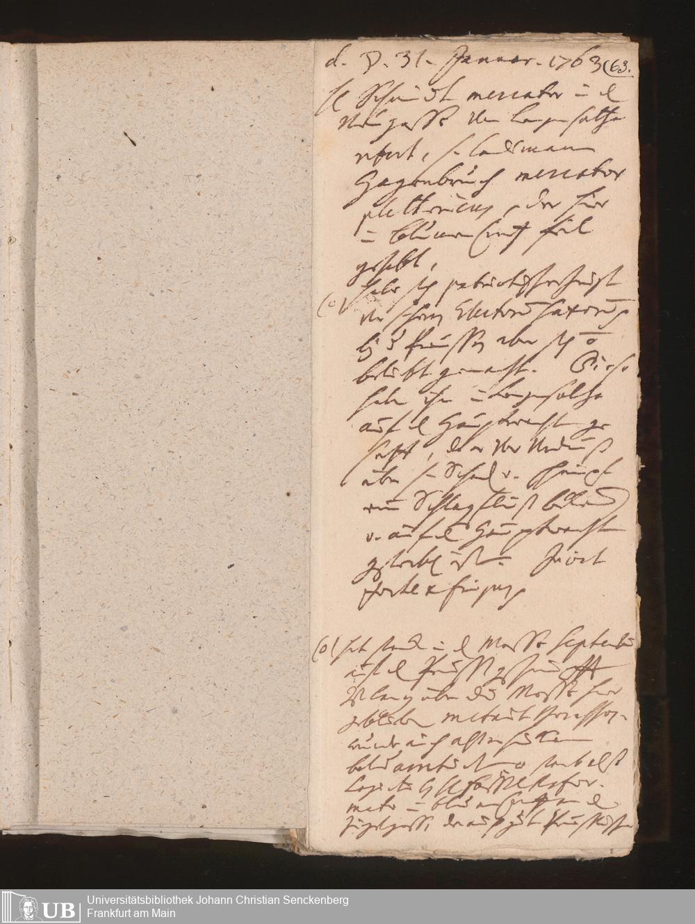 [Nichtärztliches Tagebuch: Januar - März 1763]
