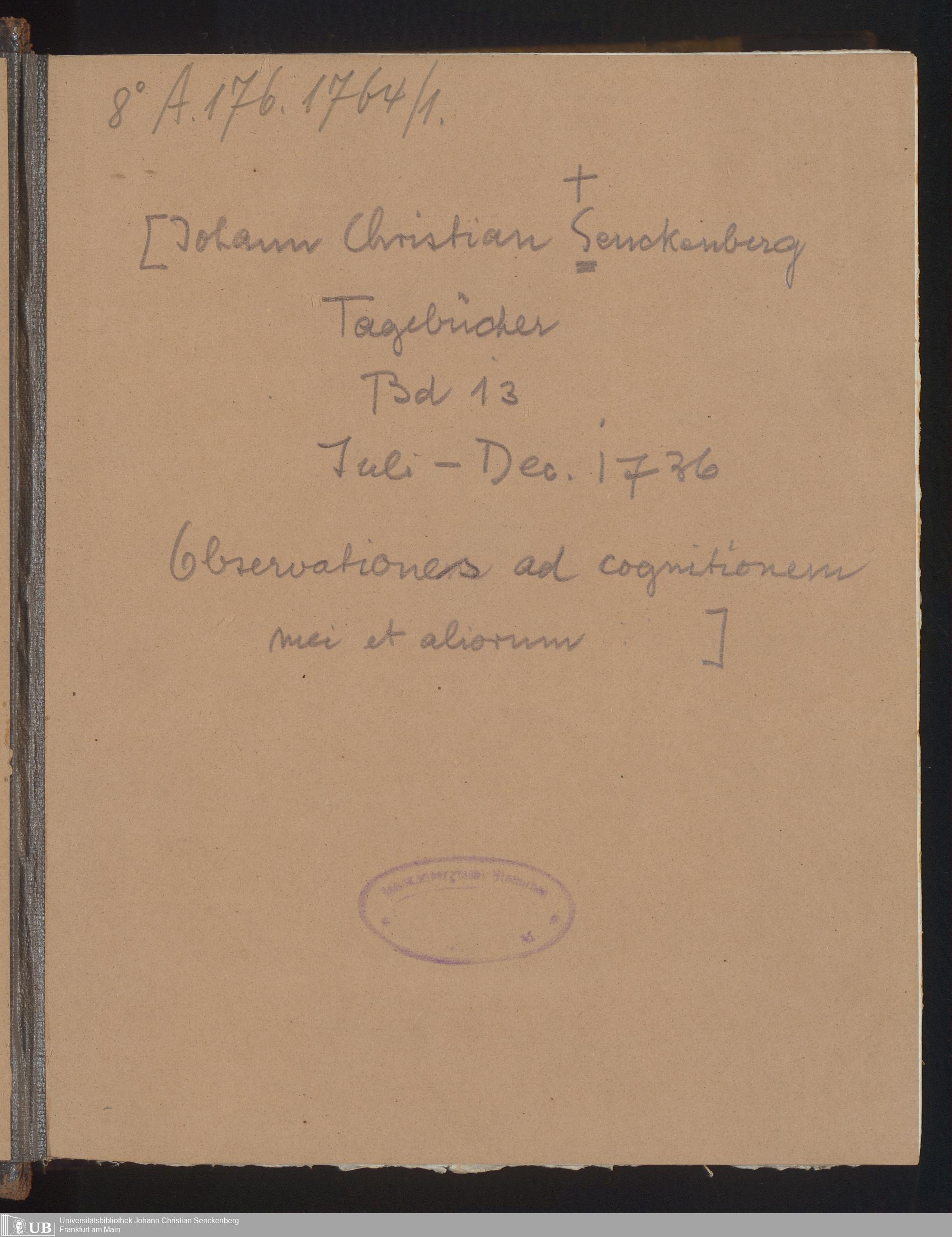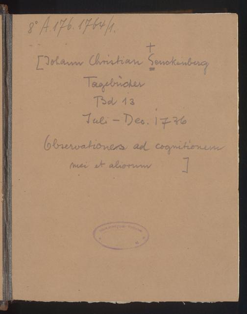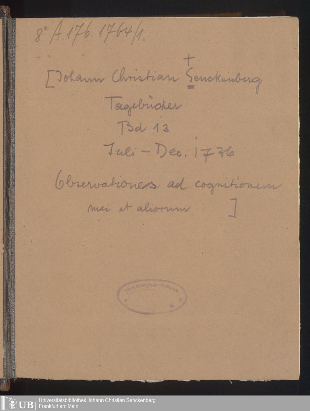 13 (1736) Observationes ad cognitionem mei et aliorum: Juli - Dezember 1736