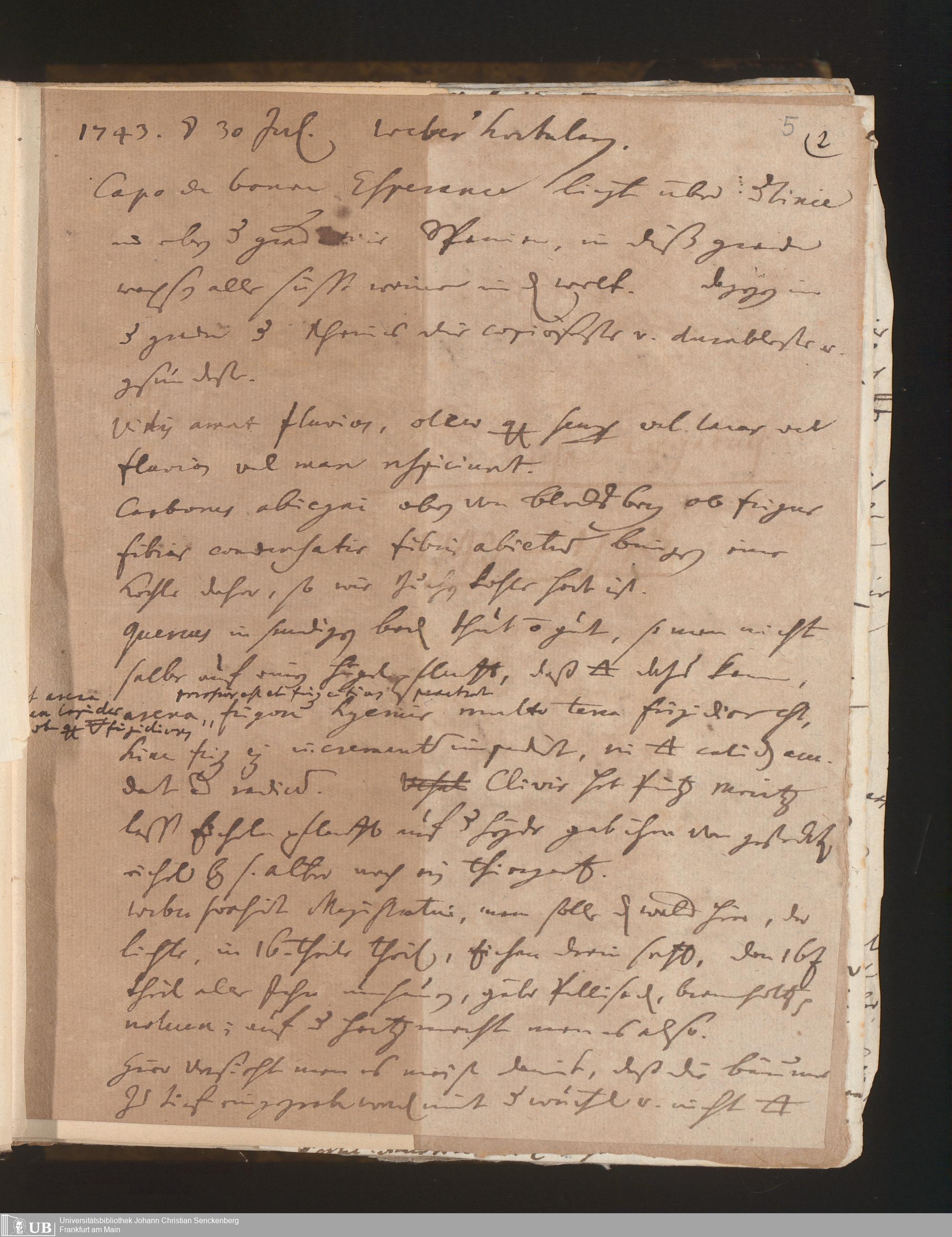 21 (1743) [Nichtärztliches Tagebuch: Juli 1743 - Februar 1748]