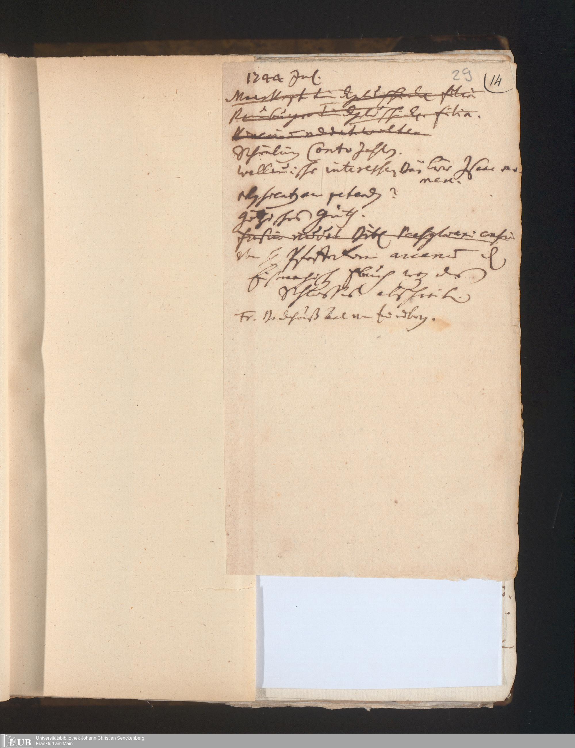 21 (1743) [Nichtärztliches Tagebuch: Juli 1743 - Februar 1748]