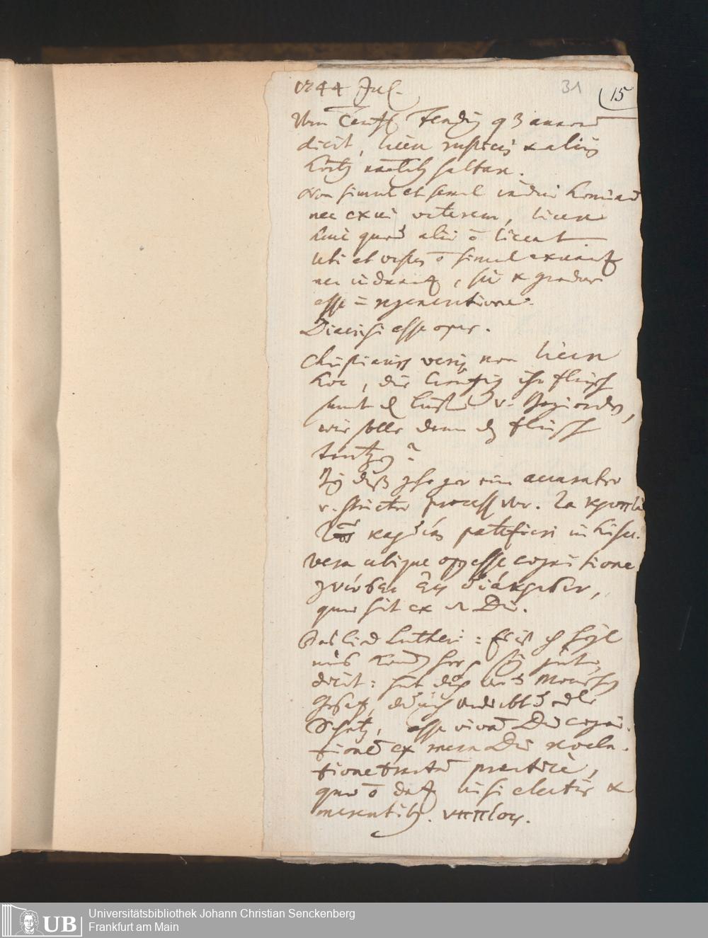 21 (1743) [Nichtärztliches Tagebuch: Juli 1743 - Februar 1748]
