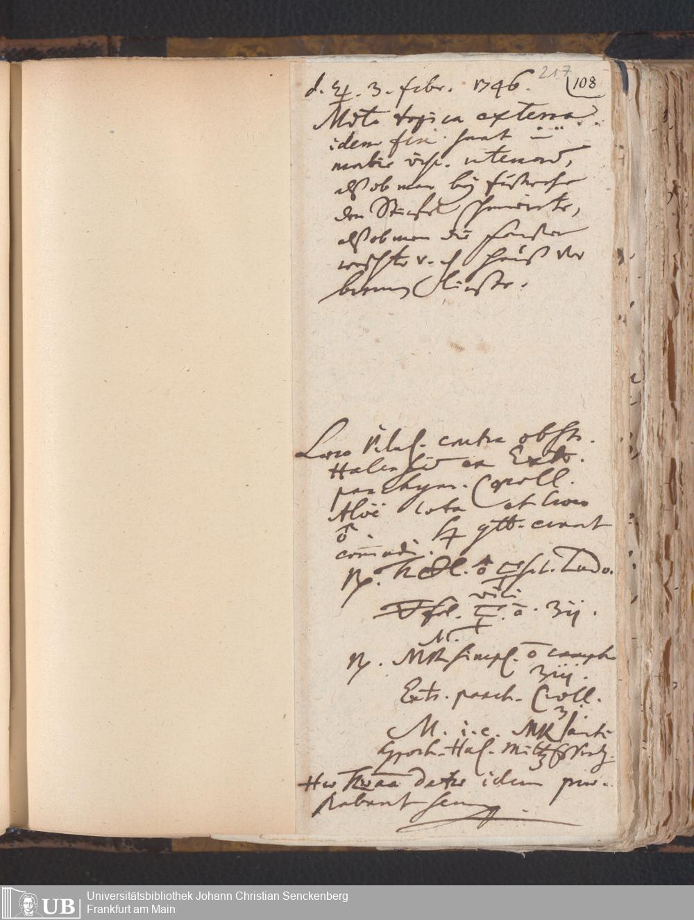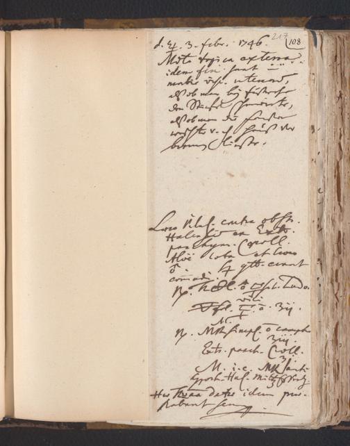 [Nichtärztliches Tagebuch: Juli 1743 - Februar 1748]
