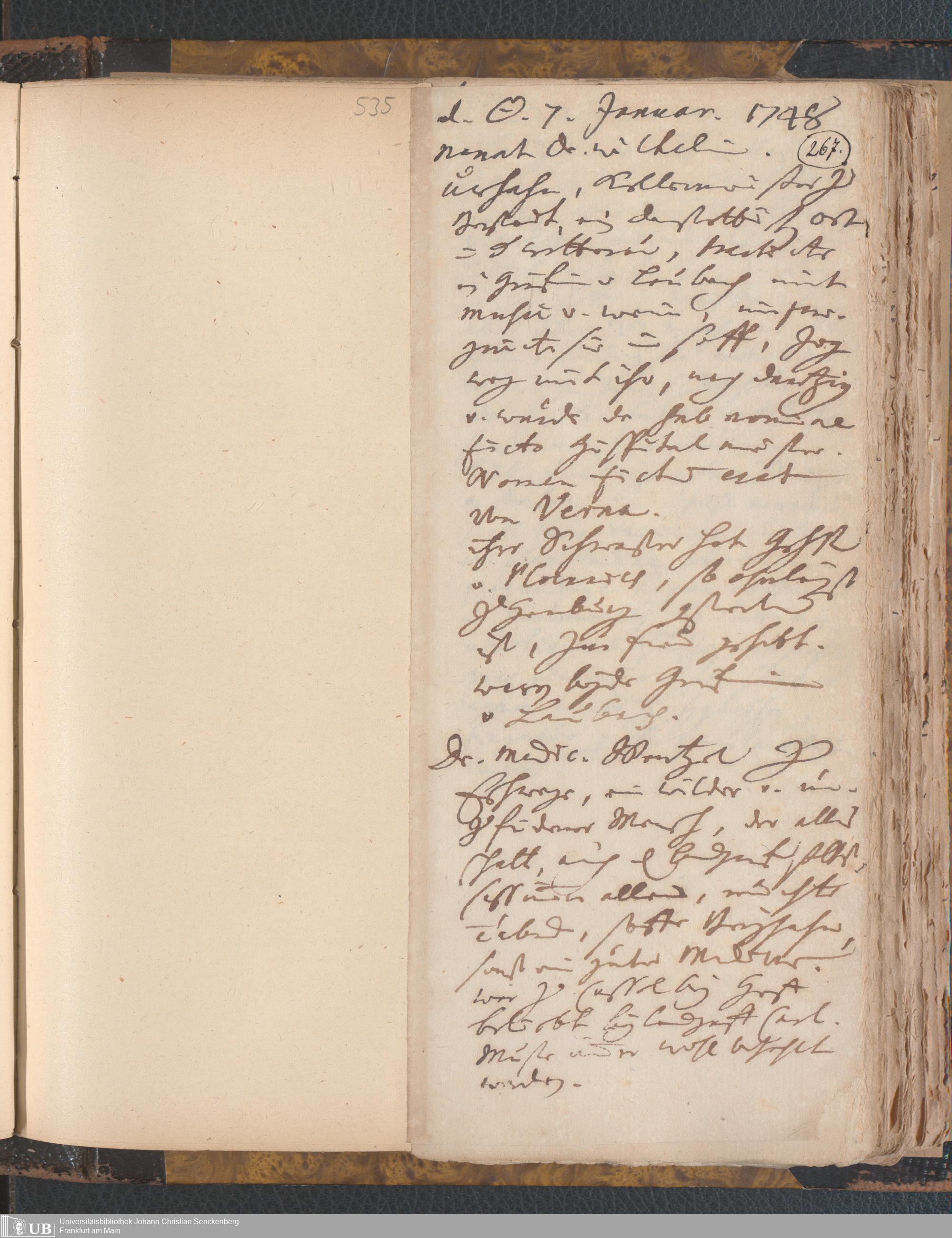 [Nichtärztliches Tagebuch: Juli 1743 - Februar 1748]