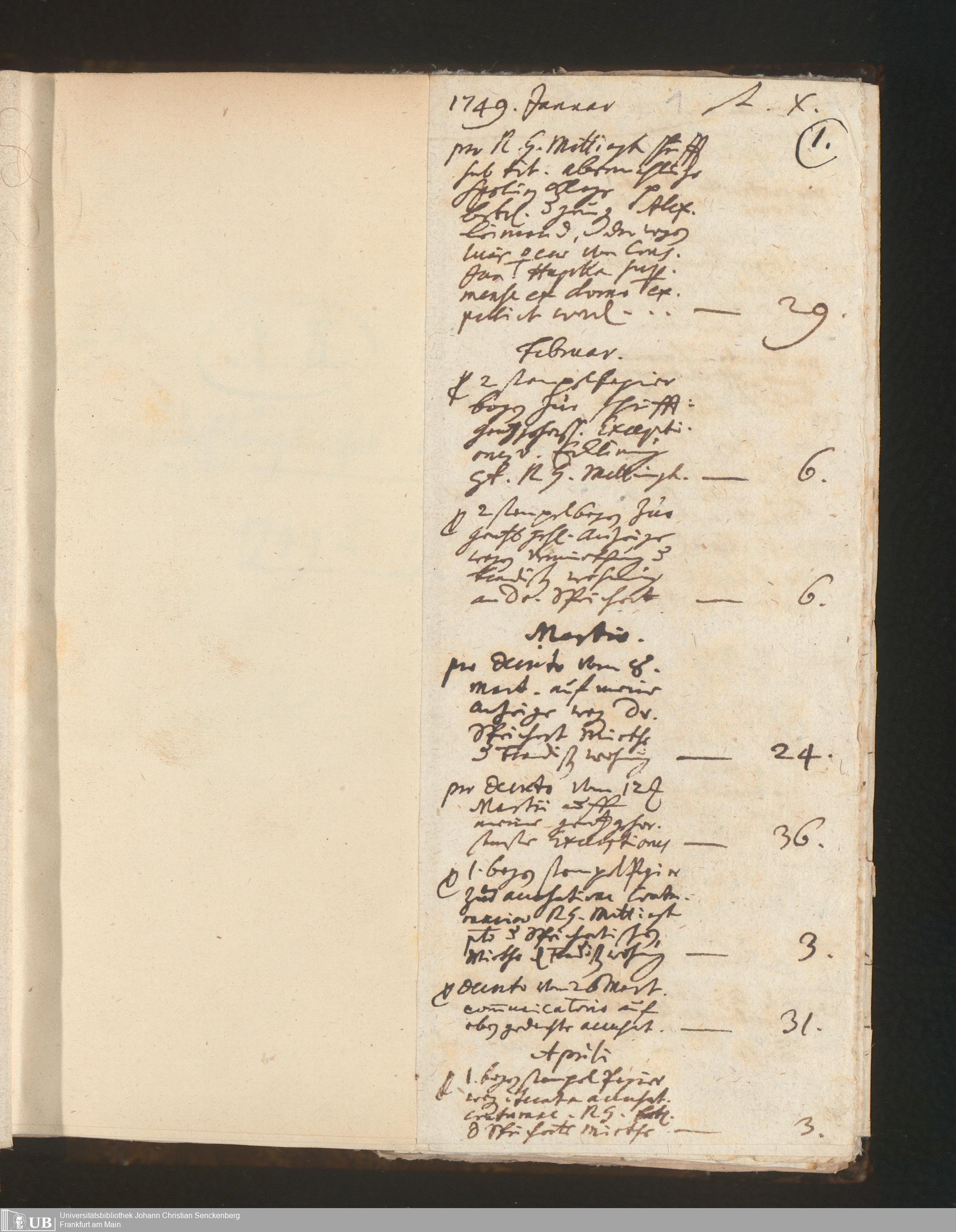 [Nichtärztliches Tagebuch: Januar 1749 - Februar 1750]