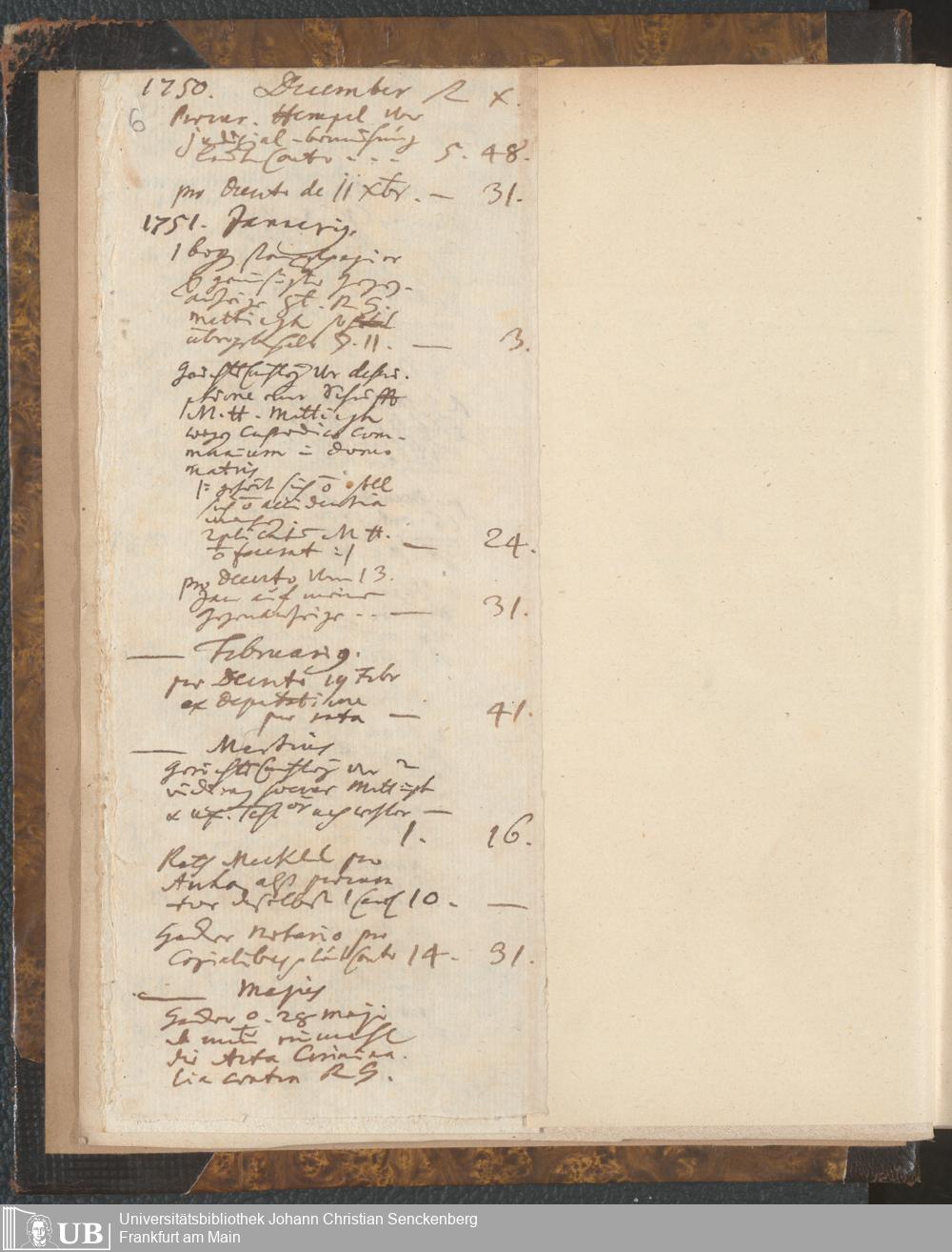 [Nichtärztliches Tagebuch: Januar 1749 - Februar 1750]
