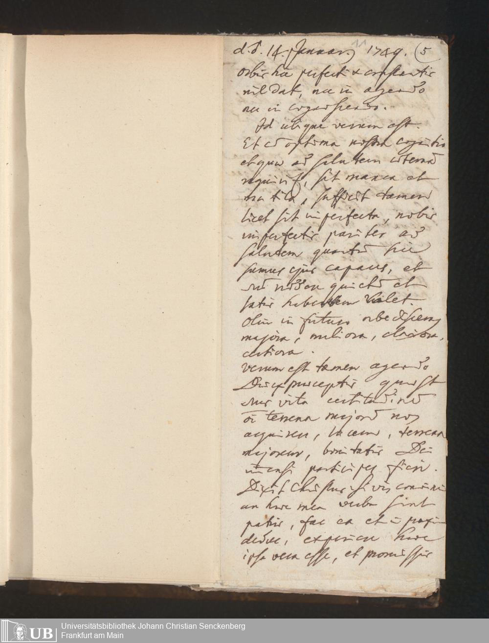 [Nichtärztliches Tagebuch: Januar 1749 - Februar 1750]