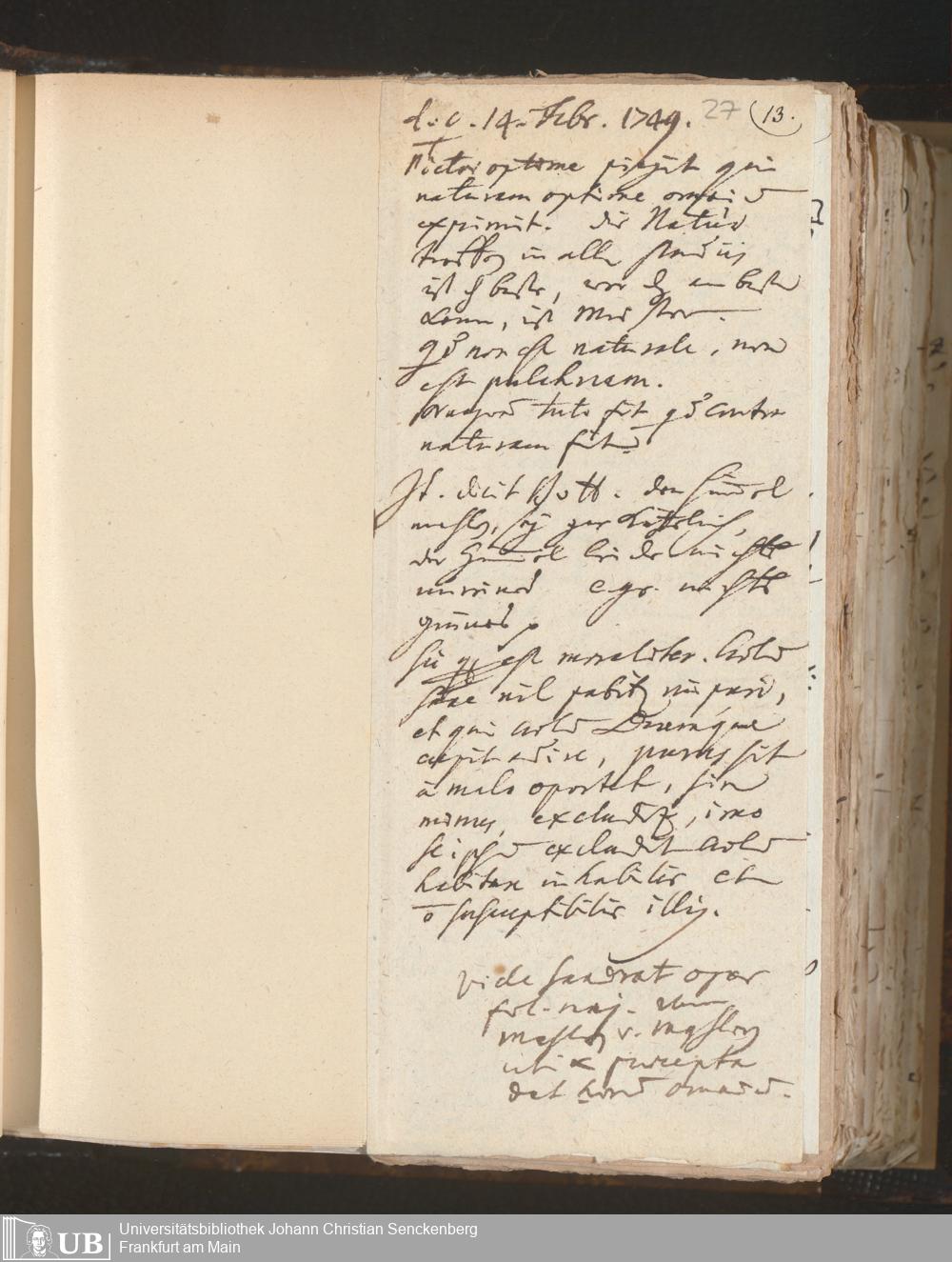 [Nichtärztliches Tagebuch: Januar 1749 - Februar 1750]