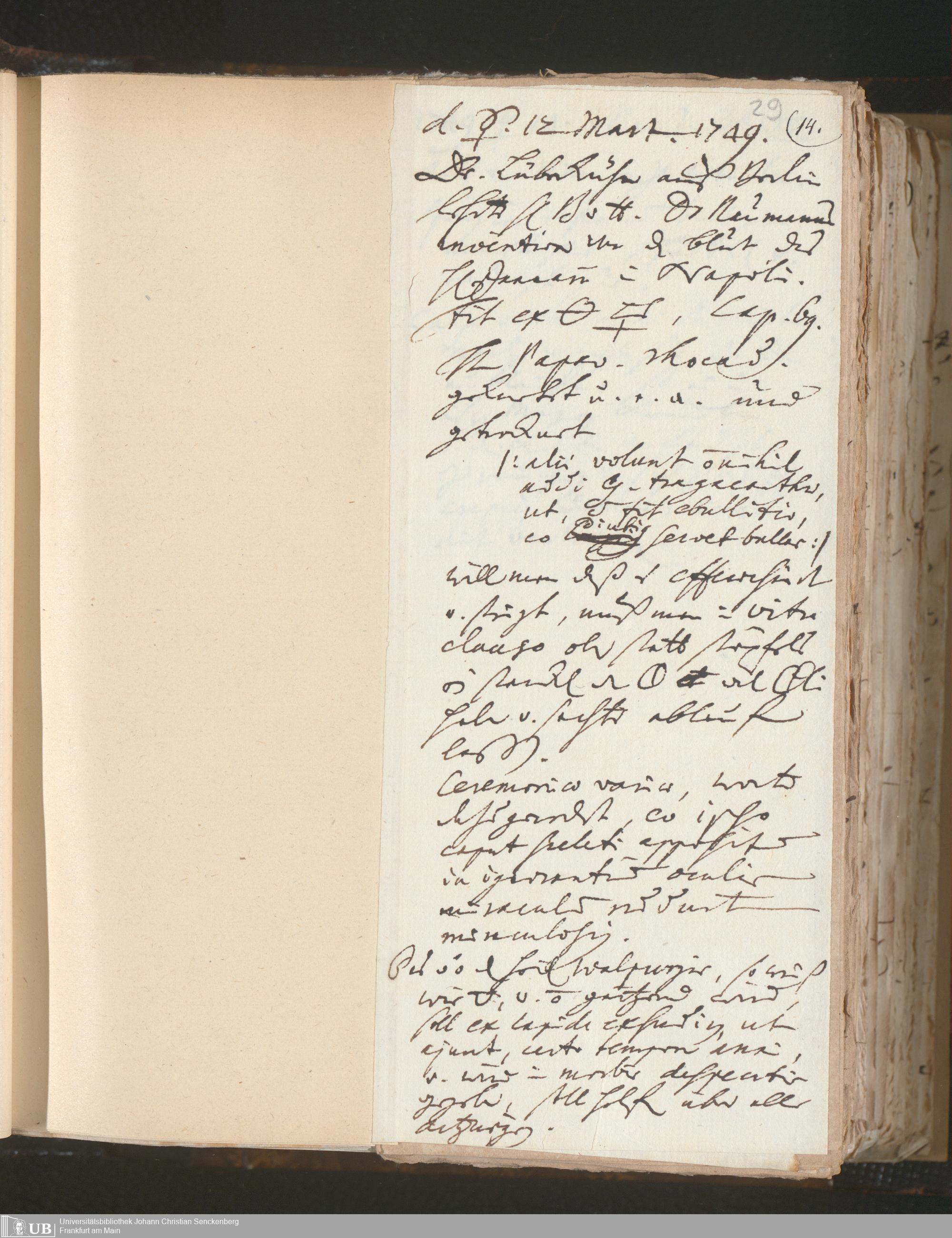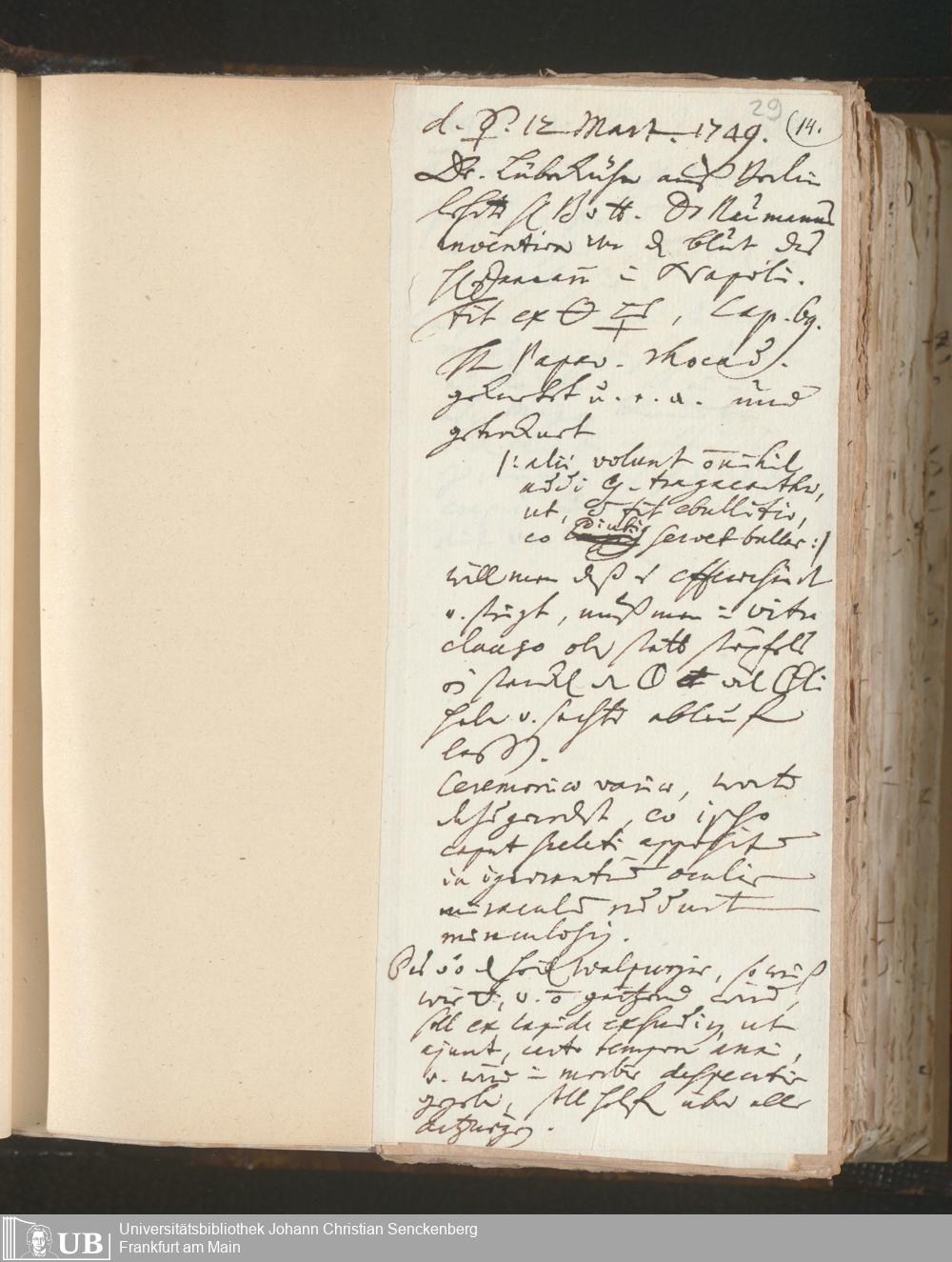 [Nichtärztliches Tagebuch: Januar 1749 - Februar 1750]