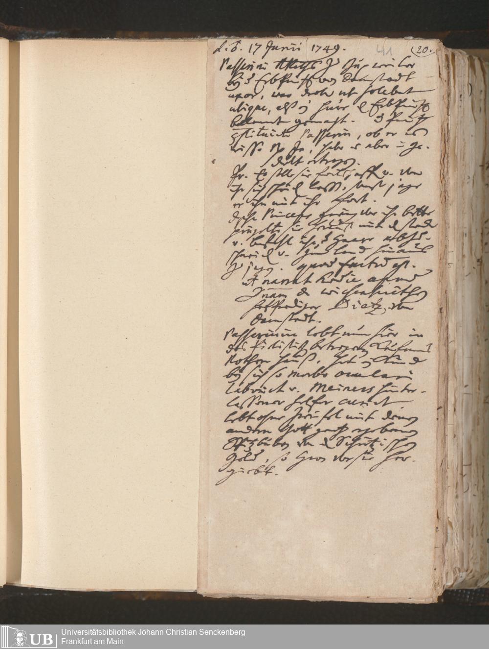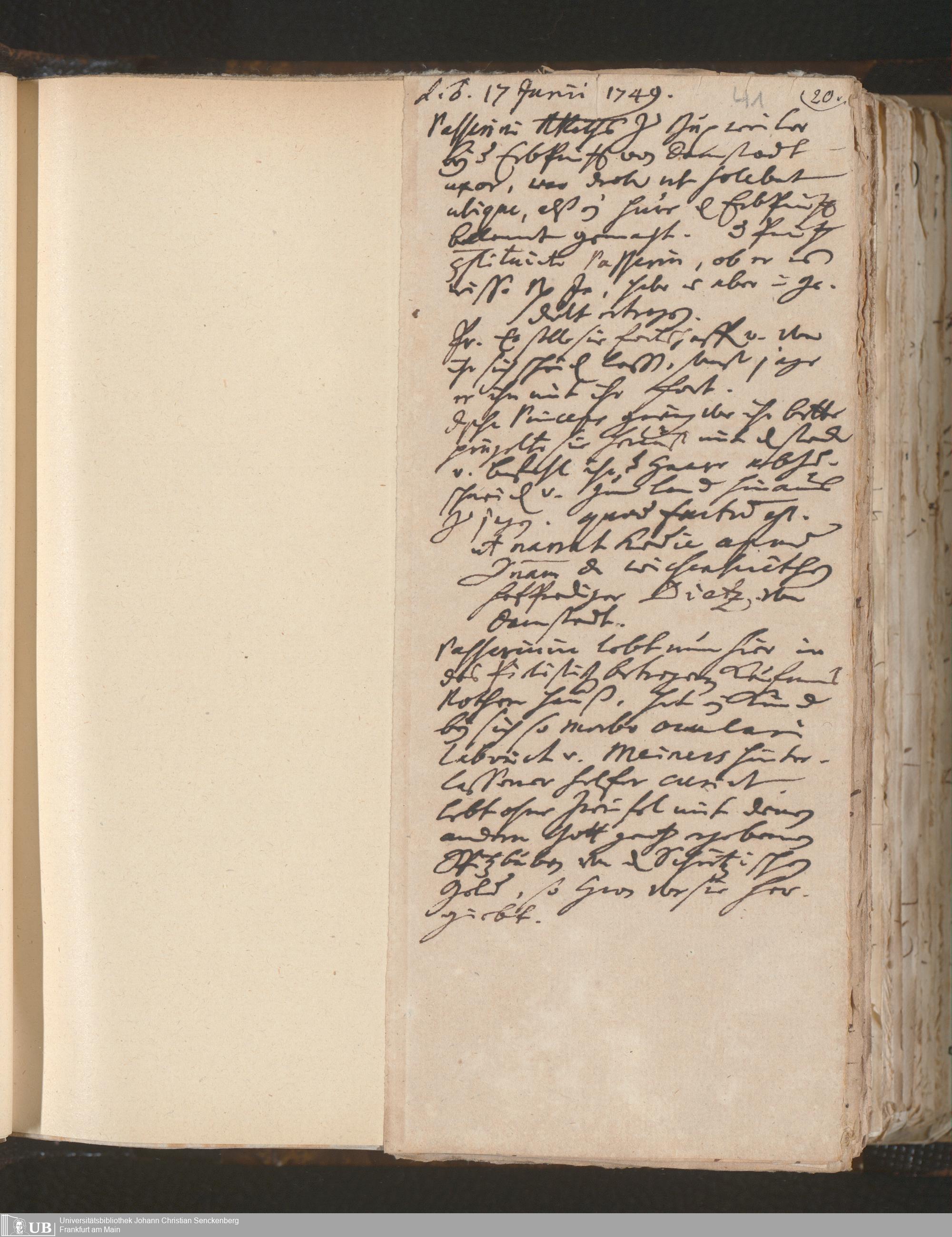[Nichtärztliches Tagebuch: Januar 1749 - Februar 1750]