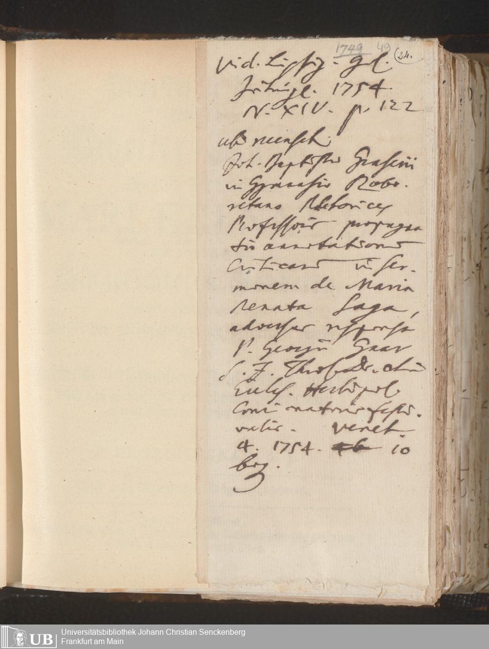 22 (1749) [Nichtärztliches Tagebuch: Januar 1749 - Februar 1750]
