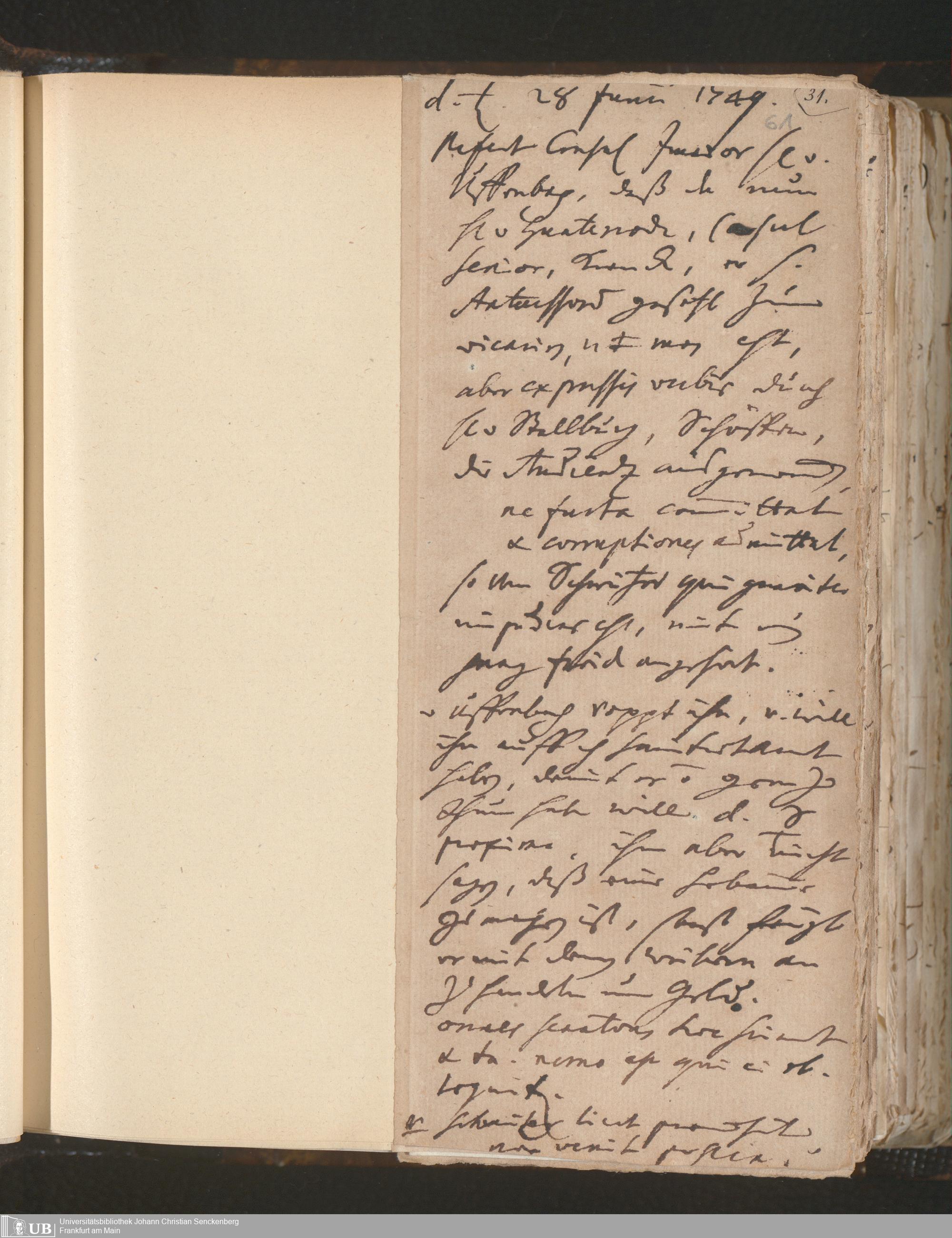 [Nichtärztliches Tagebuch: Januar 1749 - Februar 1750]
