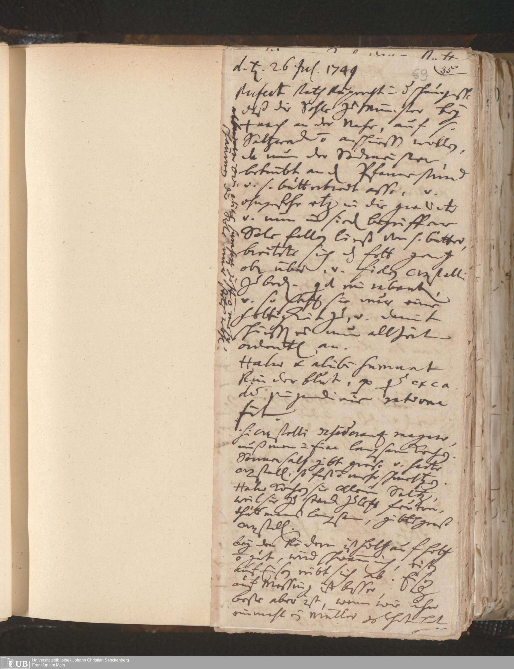 [Nichtärztliches Tagebuch: Januar 1749 - Februar 1750]