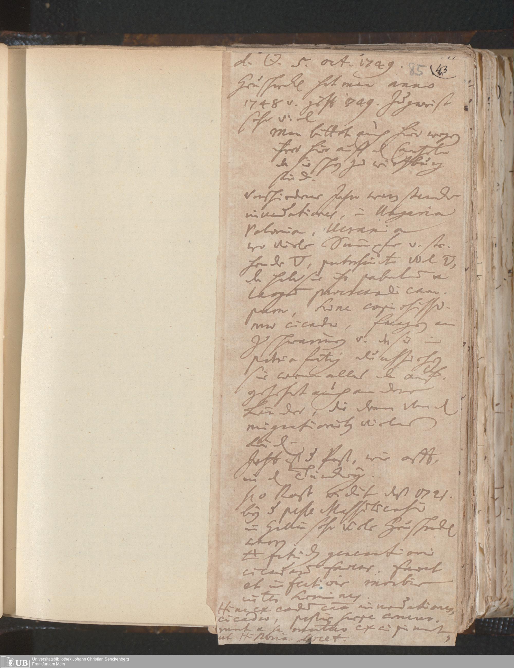 [Nichtärztliches Tagebuch: Januar 1749 - Februar 1750]