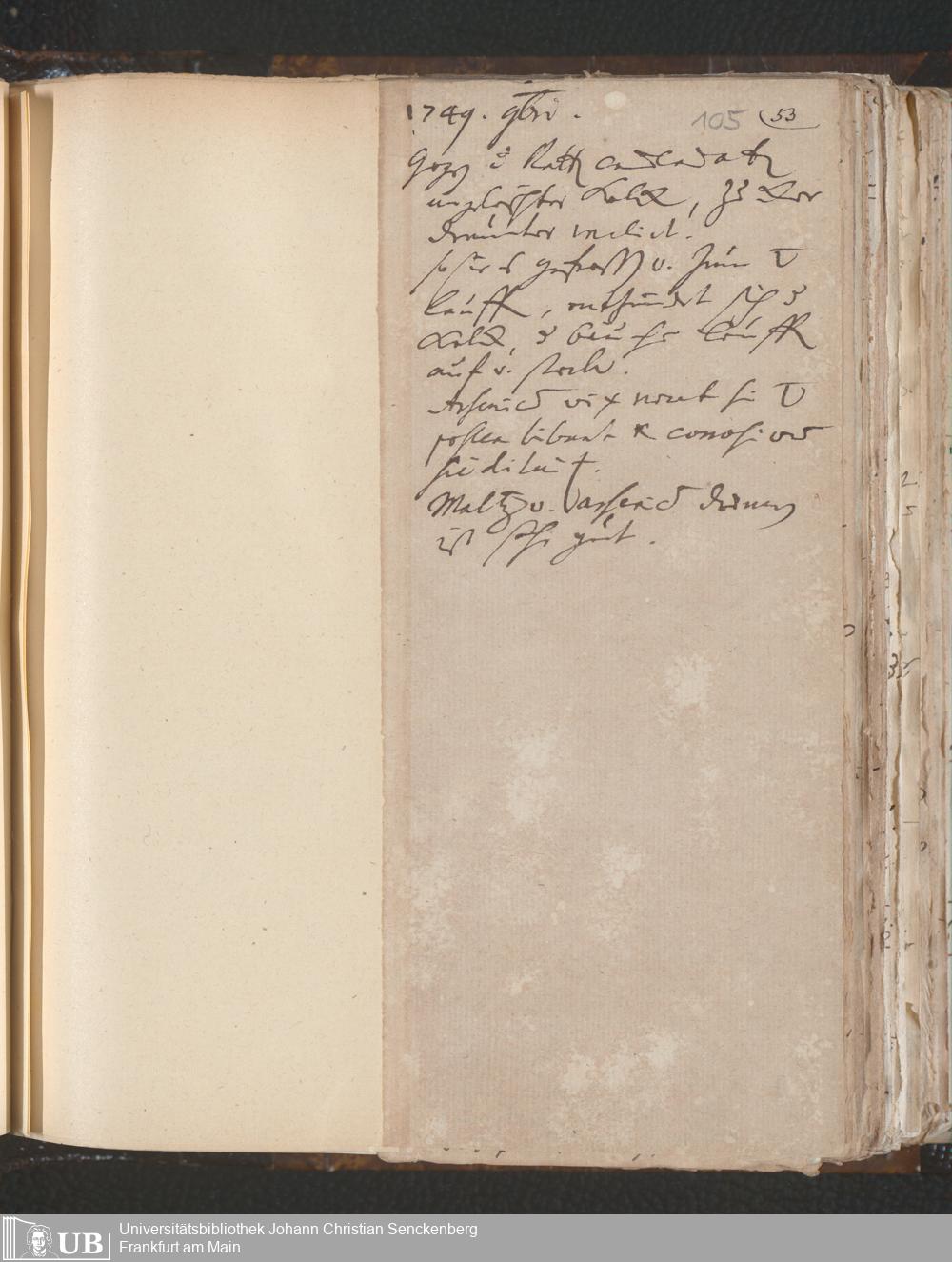 [Nichtärztliches Tagebuch: Januar 1749 - Februar 1750]