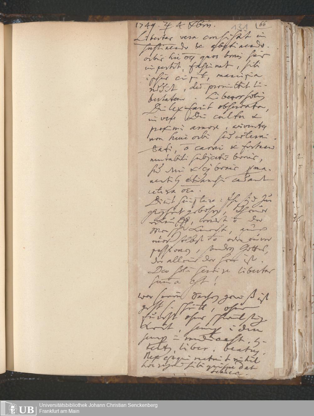 [Nichtärztliches Tagebuch: Januar 1749 - Februar 1750]