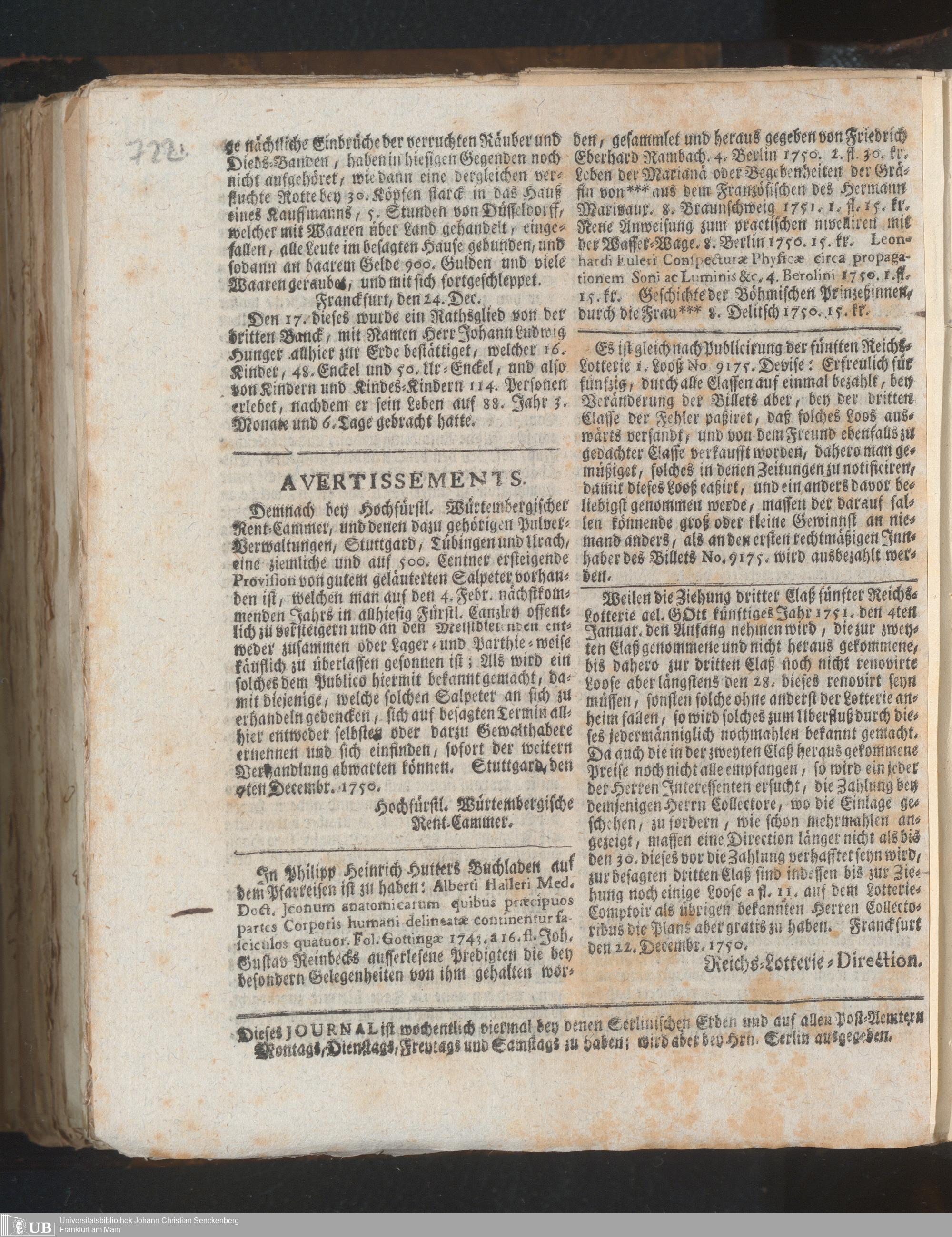 22 (1749) [Nichtärztliches Tagebuch: Januar 1749 - Februar 1750]