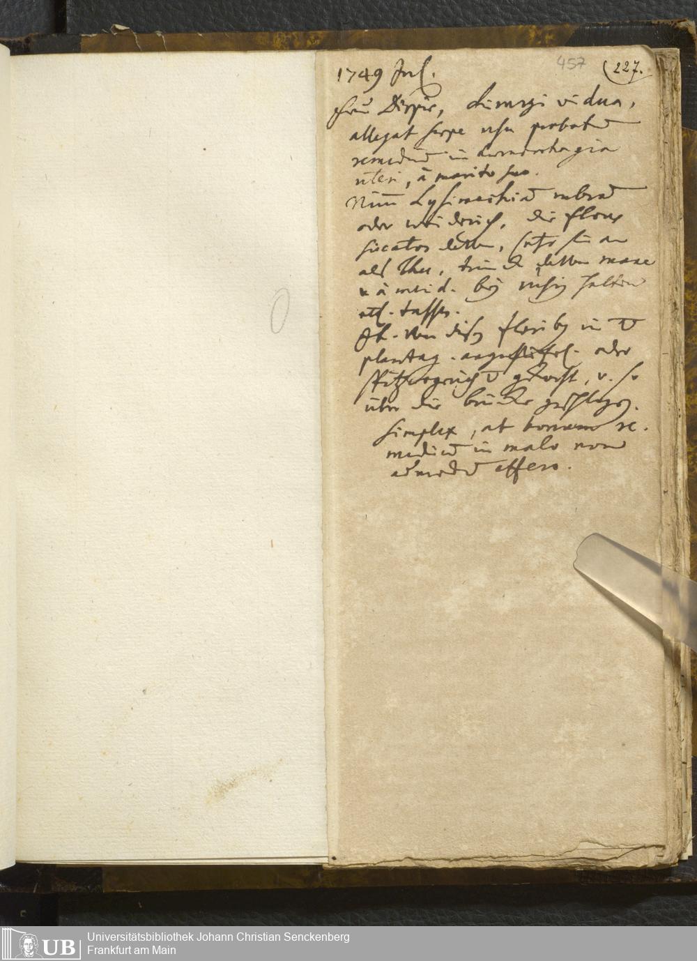 [Ärztliches Tagebuch: 1748-1749]