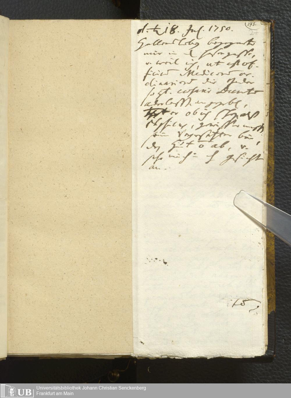 25 (1750) [Ärztliches Tagebuch: Juli - Dezember 1750]
