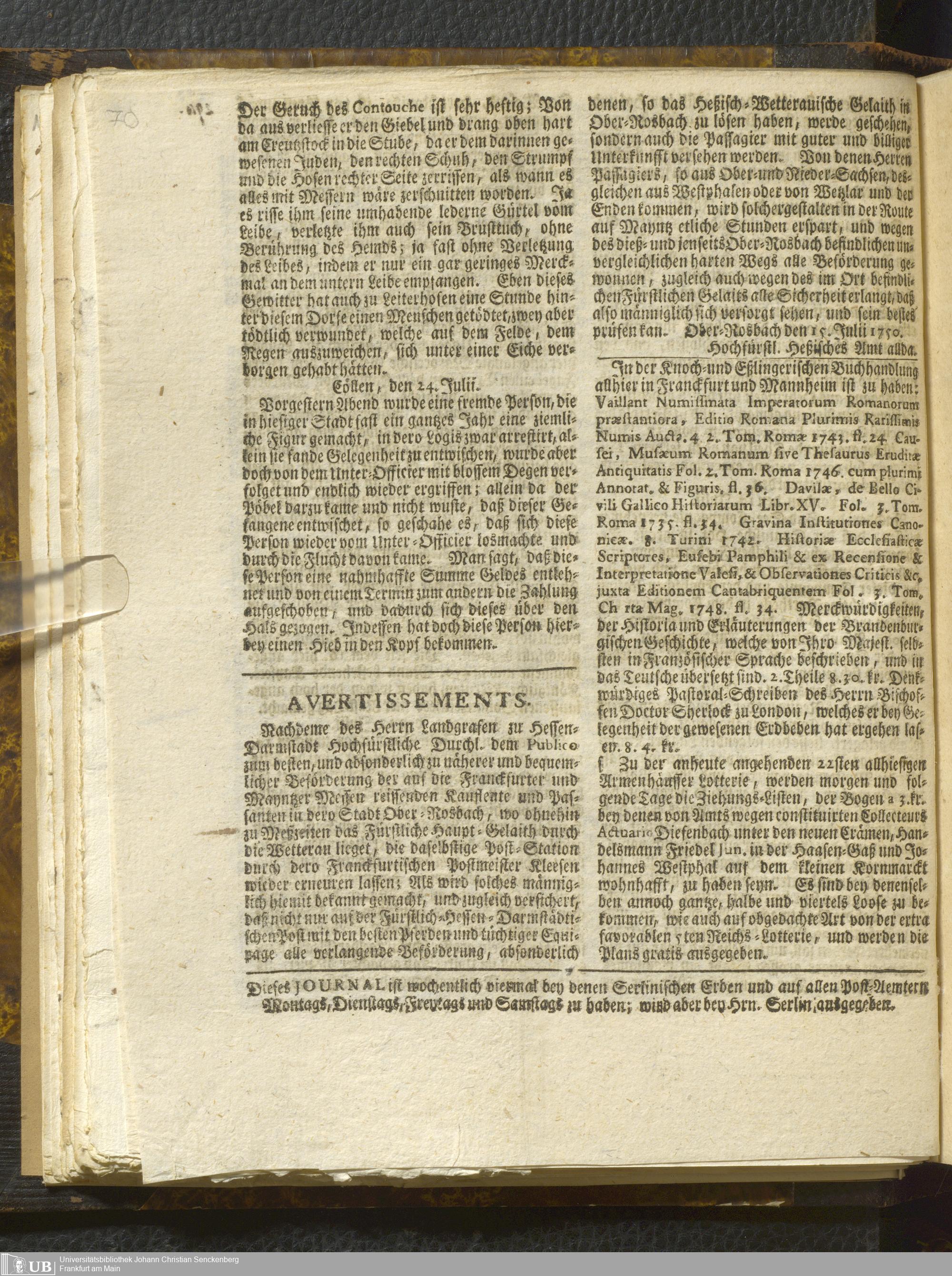 [Tagebücher Johann Christian Senckenberg (1707-1772)]