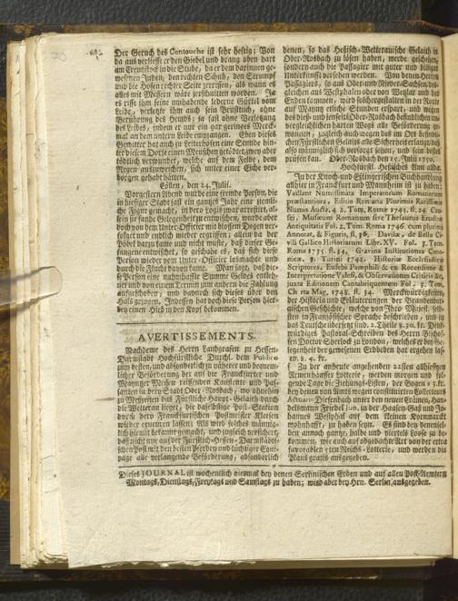 [Ärztliches Tagebuch: Juli - Dezember 1750]