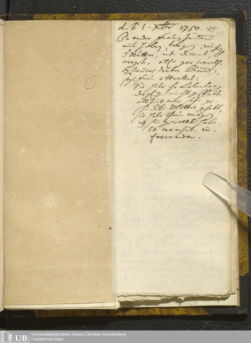 [Ärztliches Tagebuch: Juli - Dezember 1750]