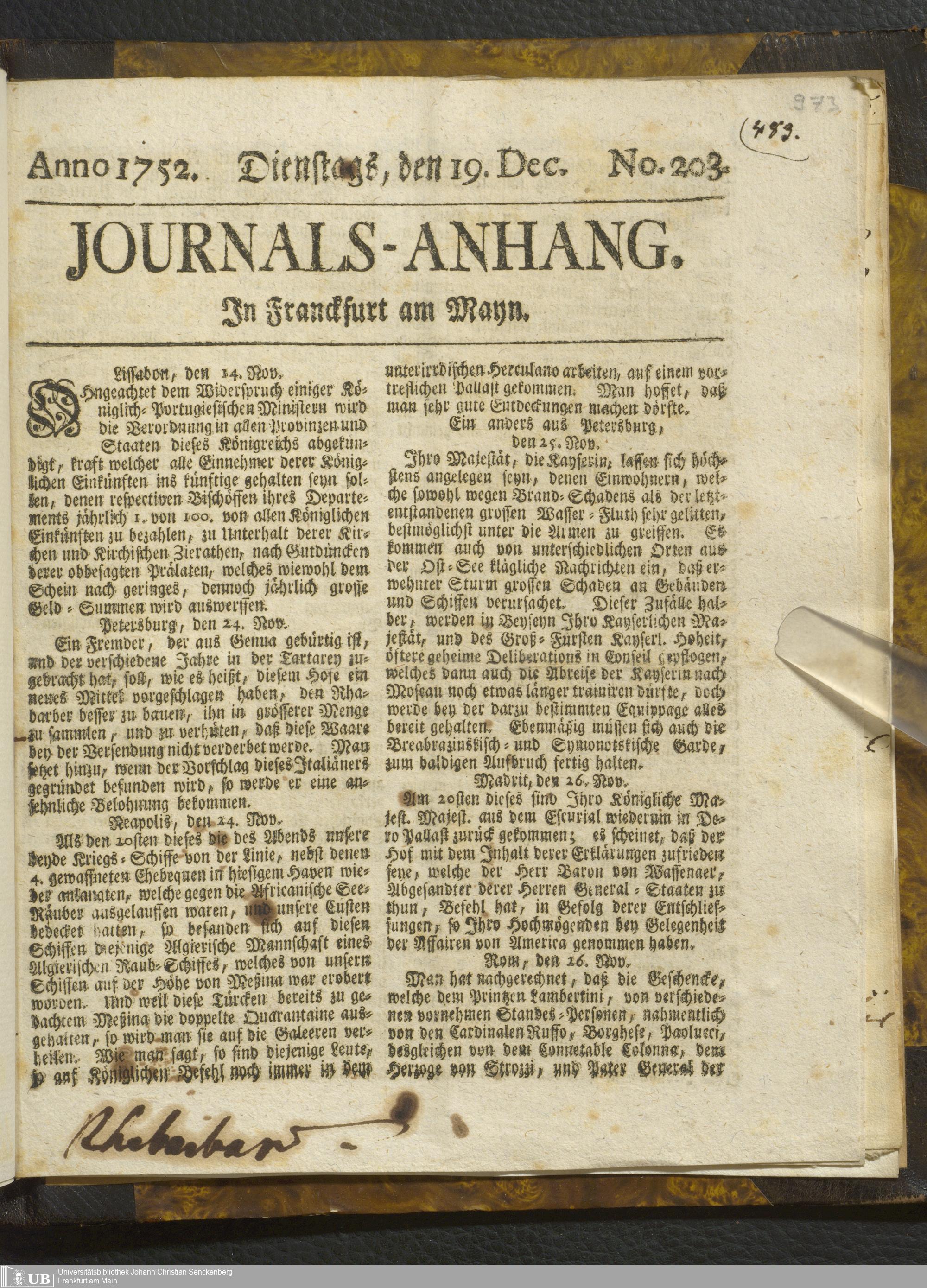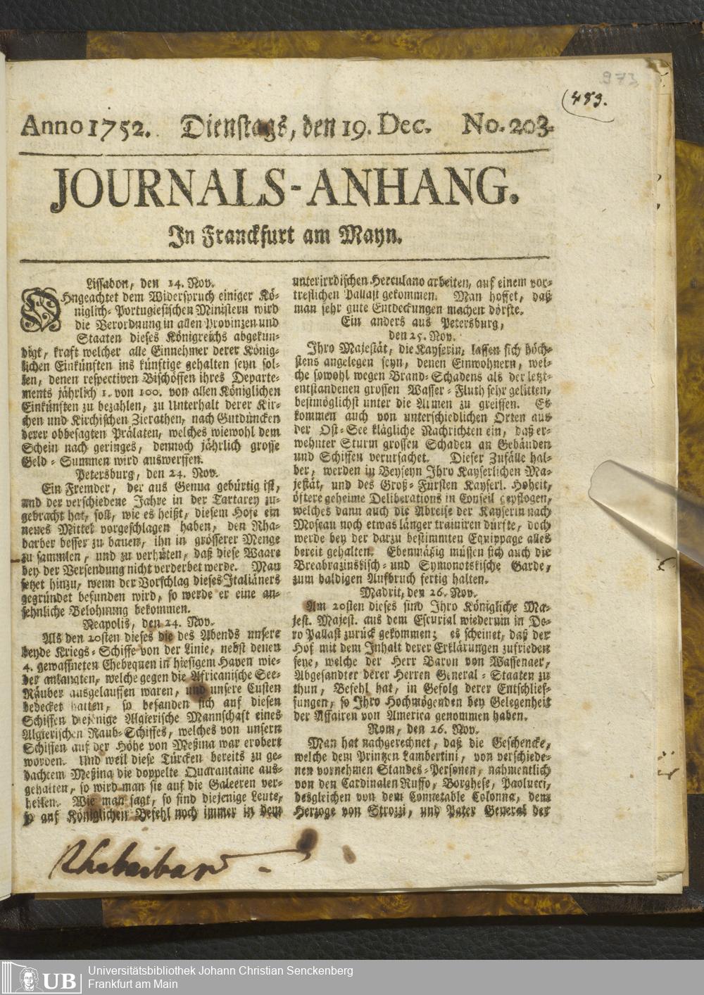 [Tagebücher Johann Christian Senckenberg (1707-1772)]