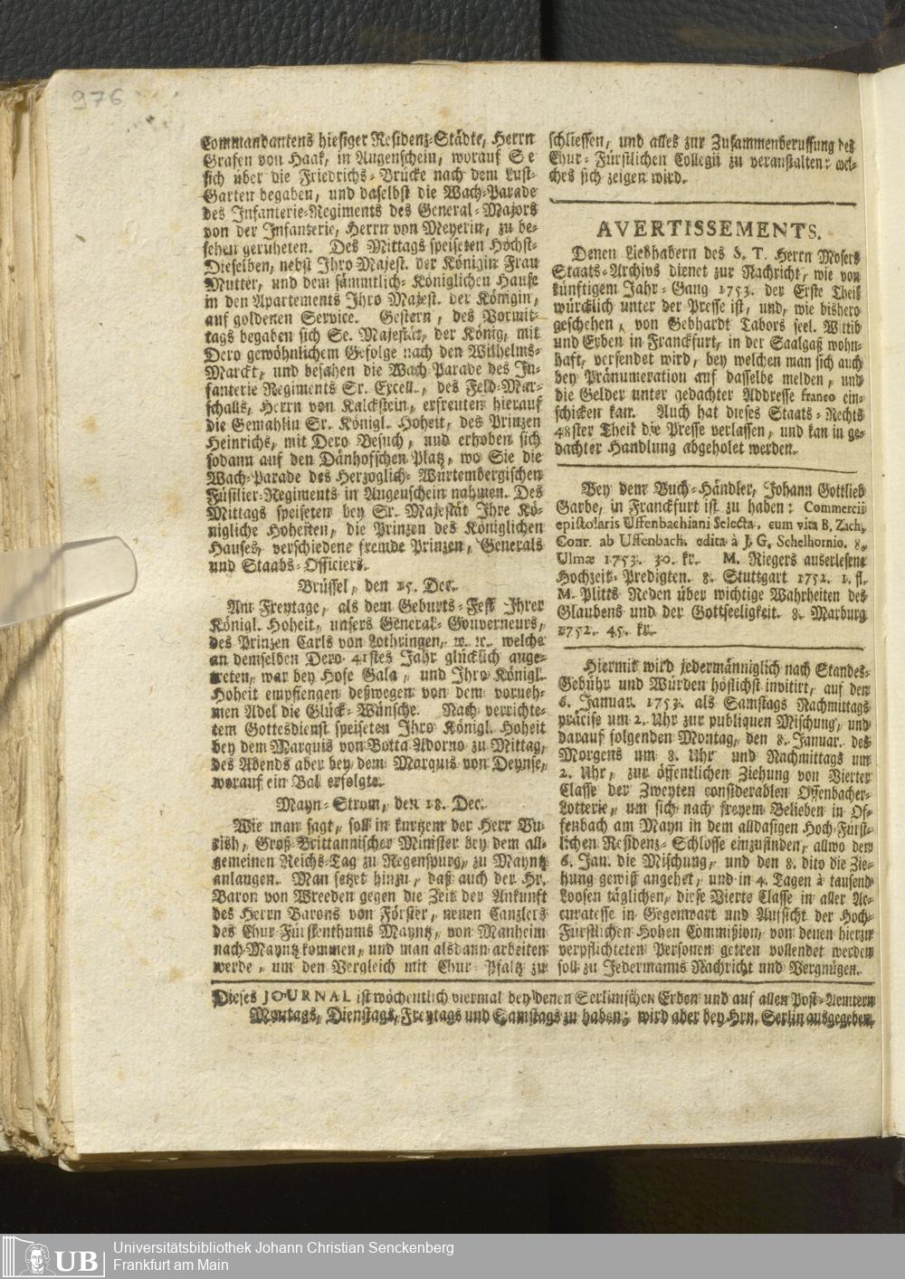 [Tagebücher Johann Christian Senckenberg (1707-1772)]