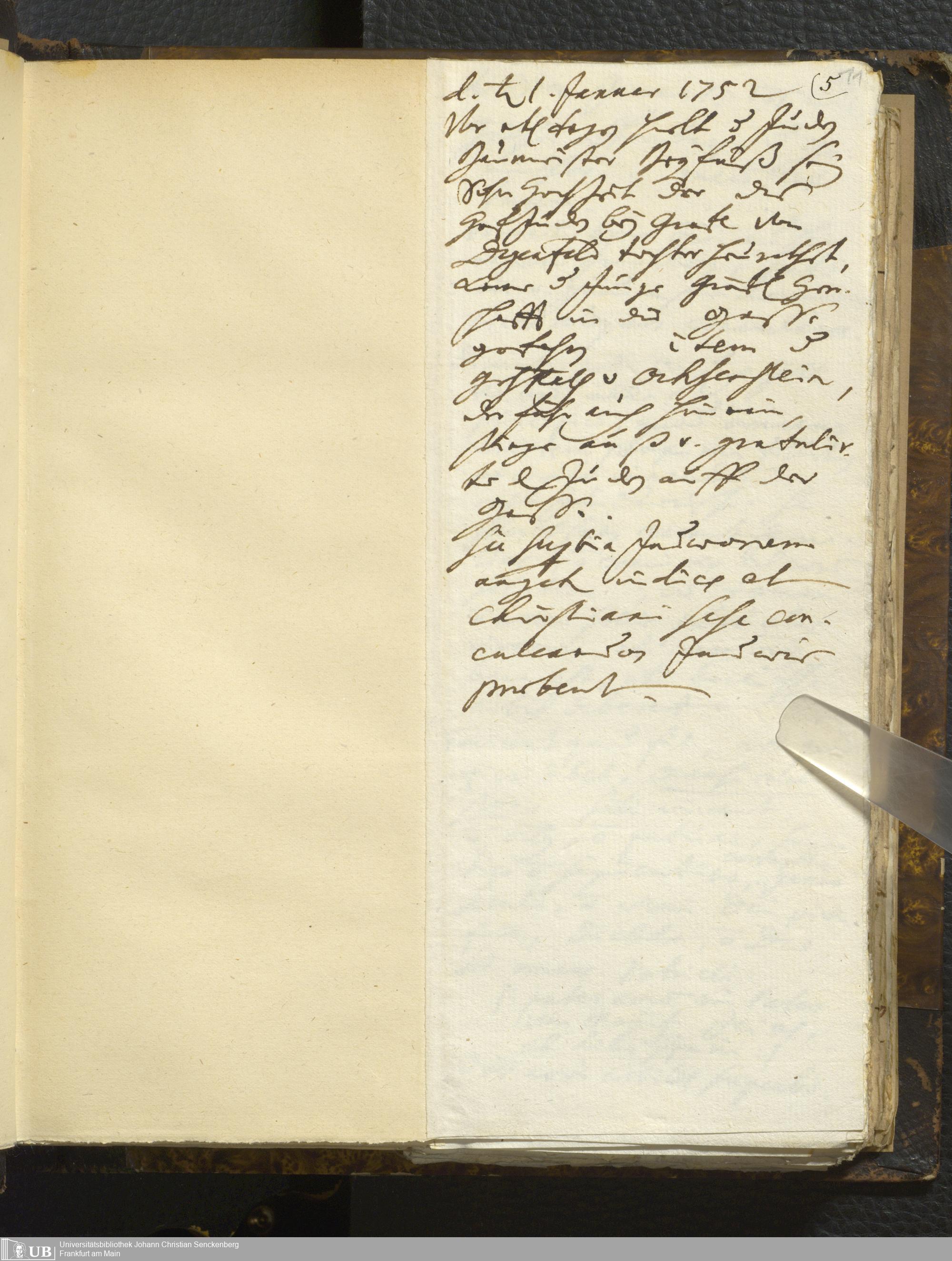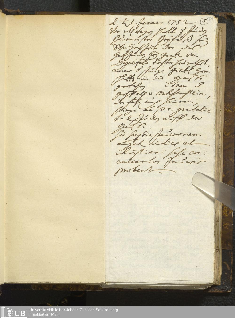 [Nicht-ärztliches Tagebuch: Januar - Mai 1752]