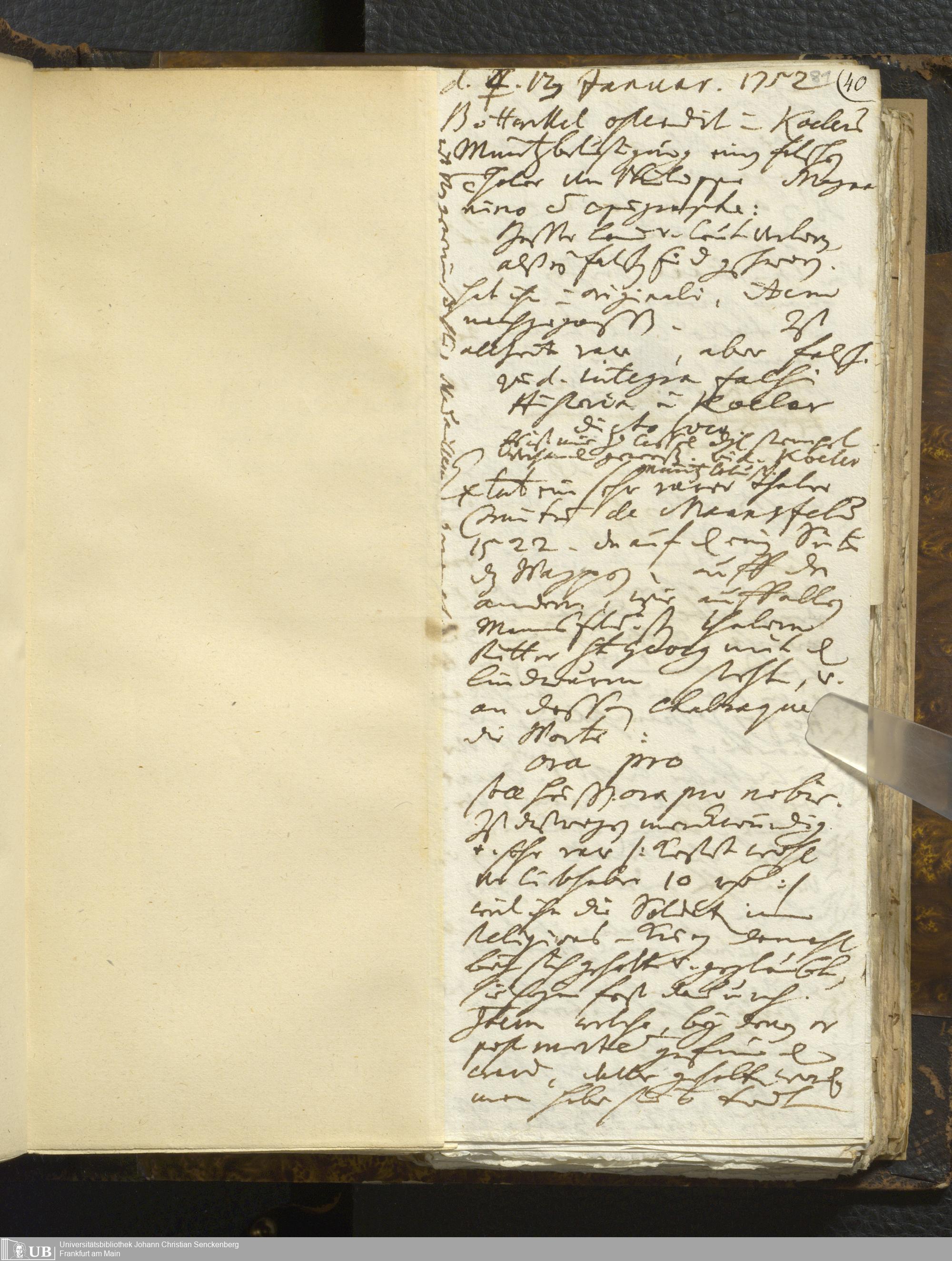 [Nicht-ärztliches Tagebuch: Januar - Mai 1752]