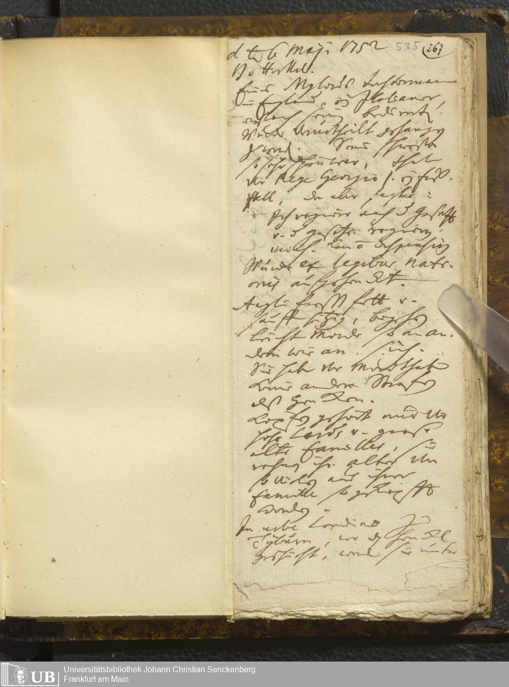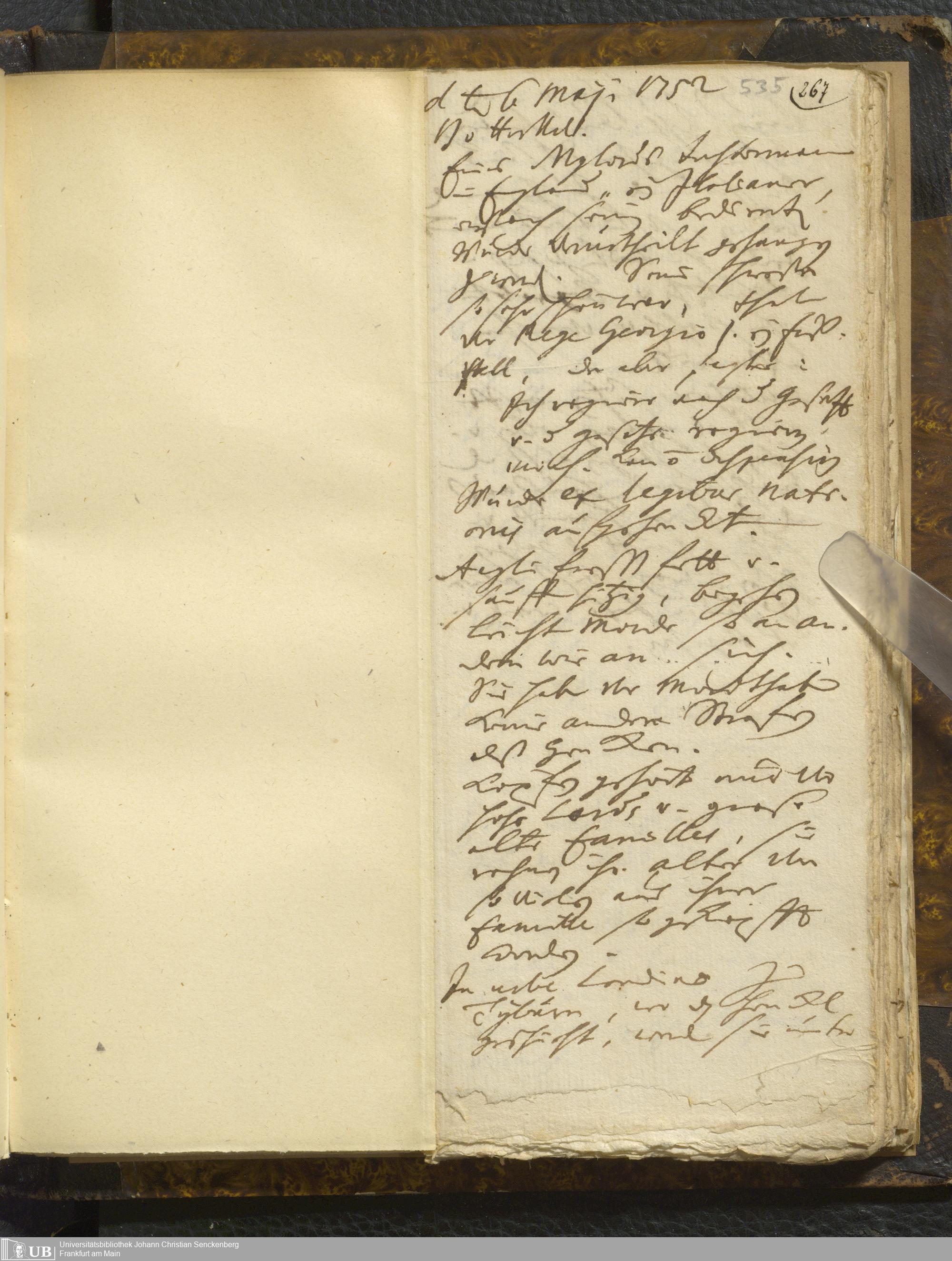[Nicht-ärztliches Tagebuch: Januar - Mai 1752]