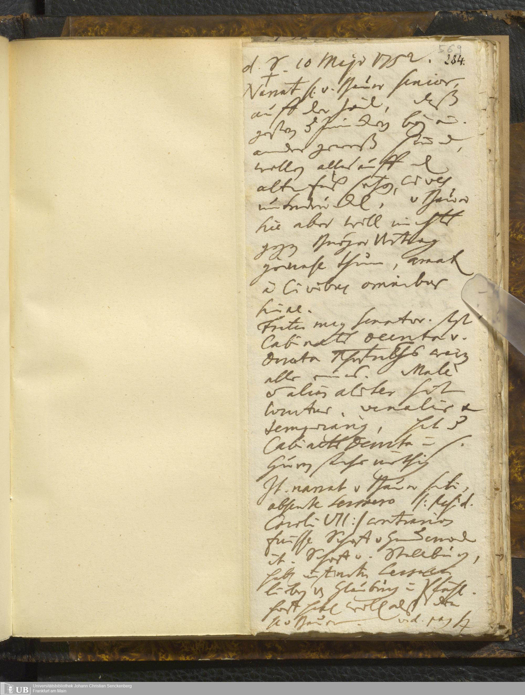[Nicht-ärztliches Tagebuch: Januar - Mai 1752]