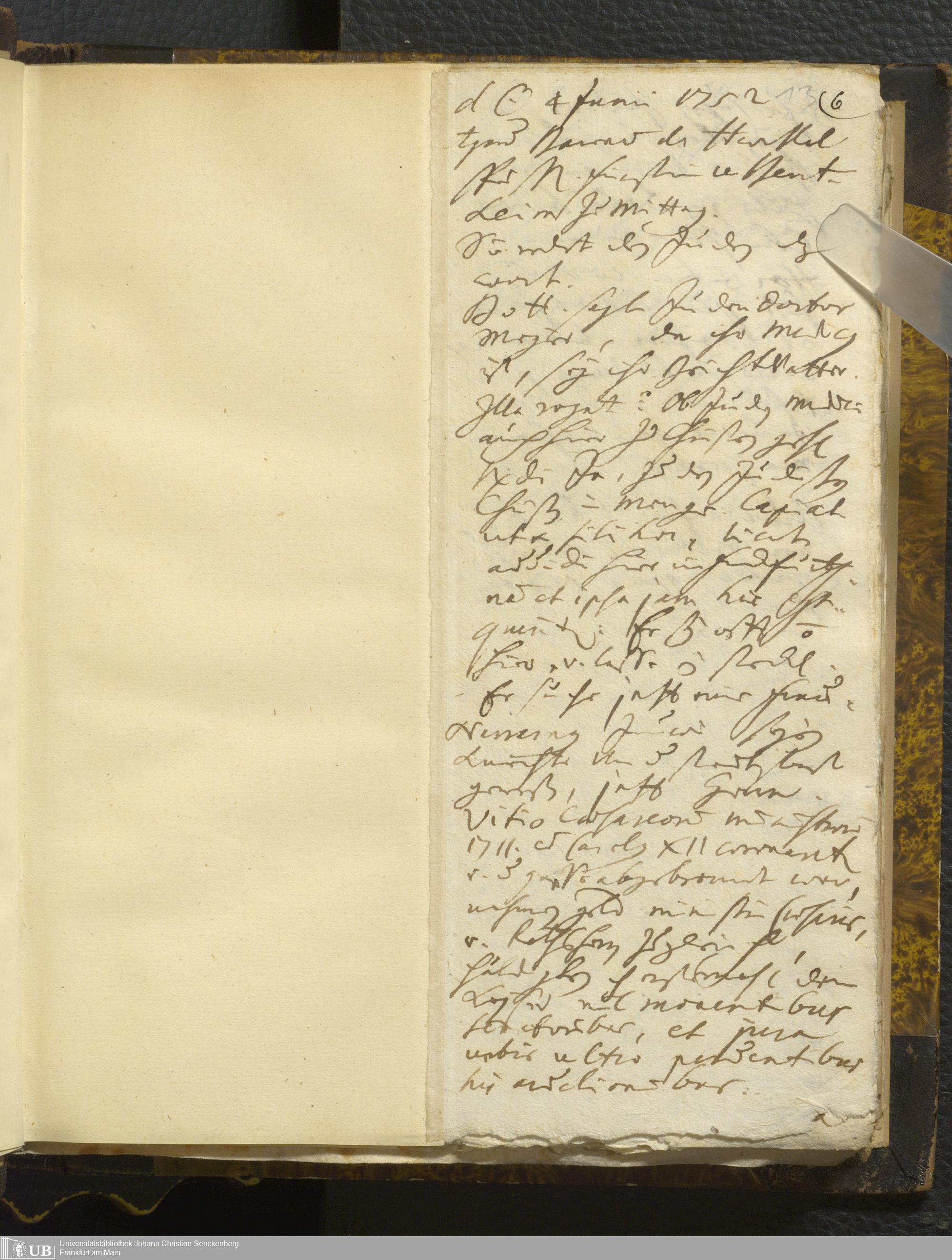 [Nicht-ärztliches Tagebuch: Juni - Dezember 1752]