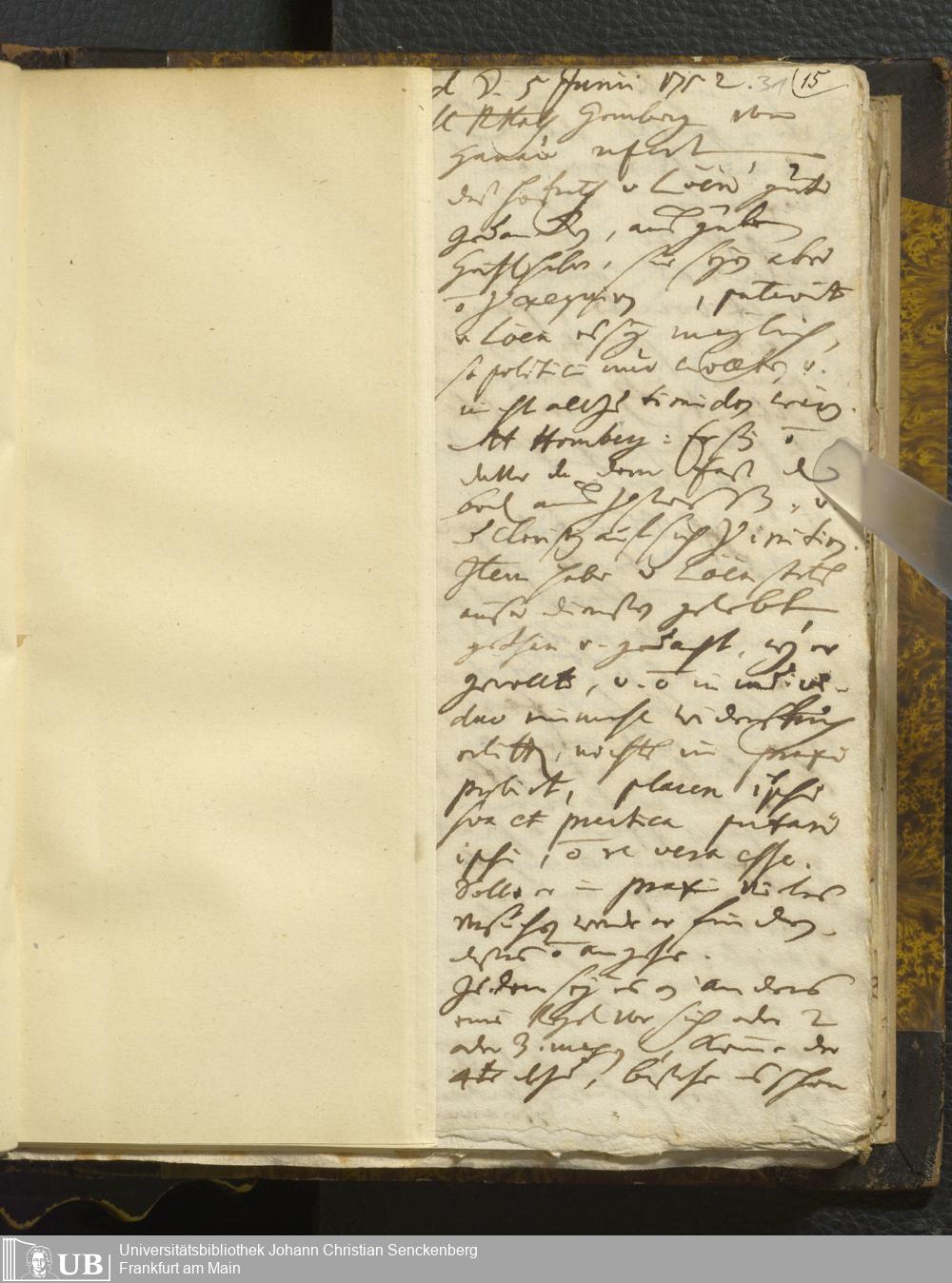 [Nicht-ärztliches Tagebuch: Juni - Dezember 1752]