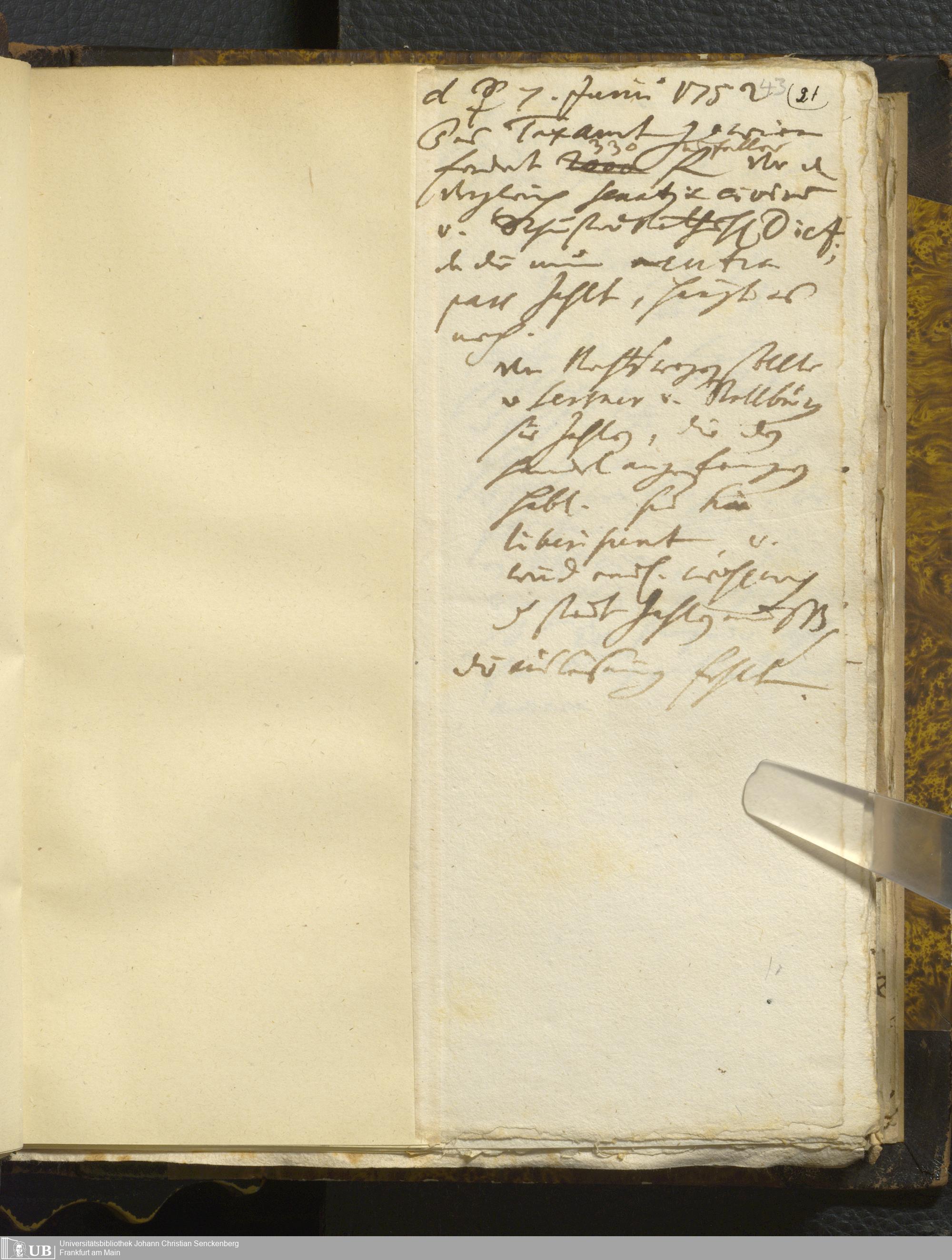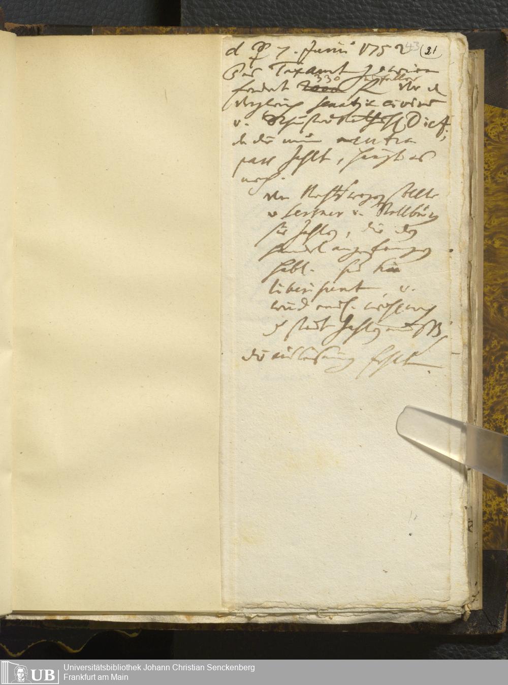 [Nicht-ärztliches Tagebuch: Juni - Dezember 1752]