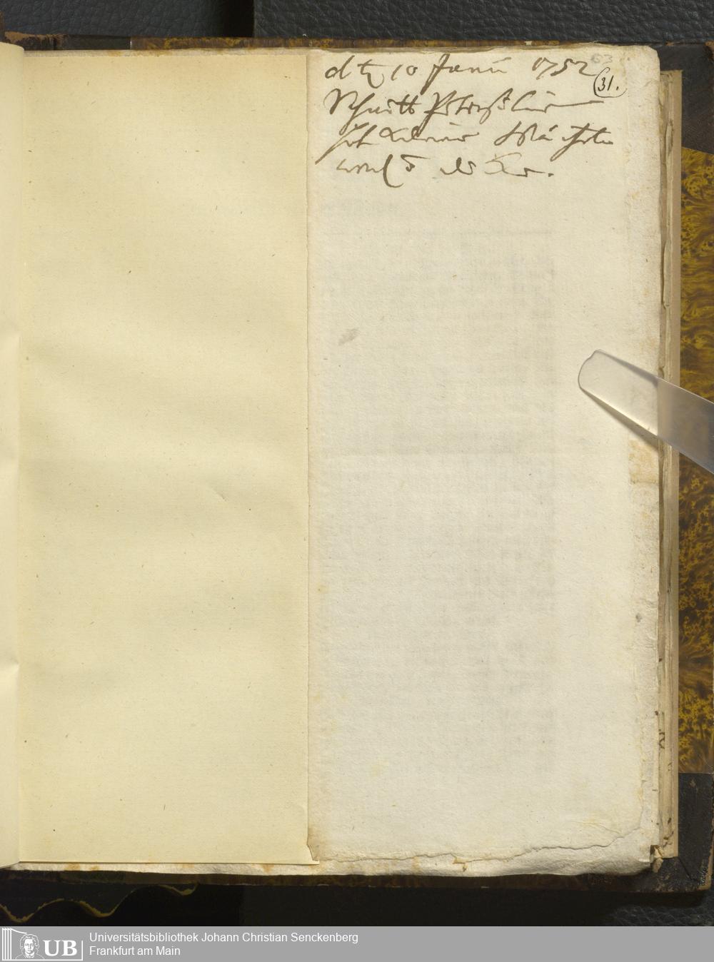 30 (1752) [Nicht-ärztliches Tagebuch: Juni - Dezember 1752]