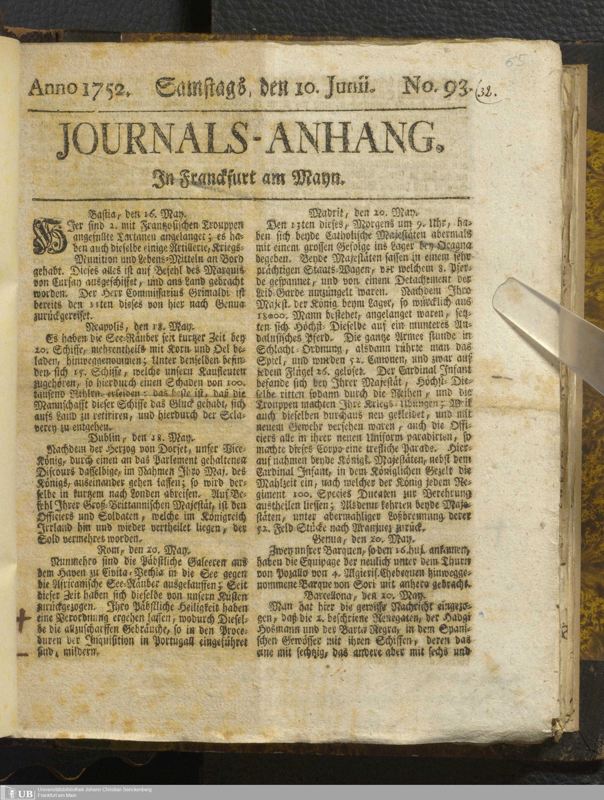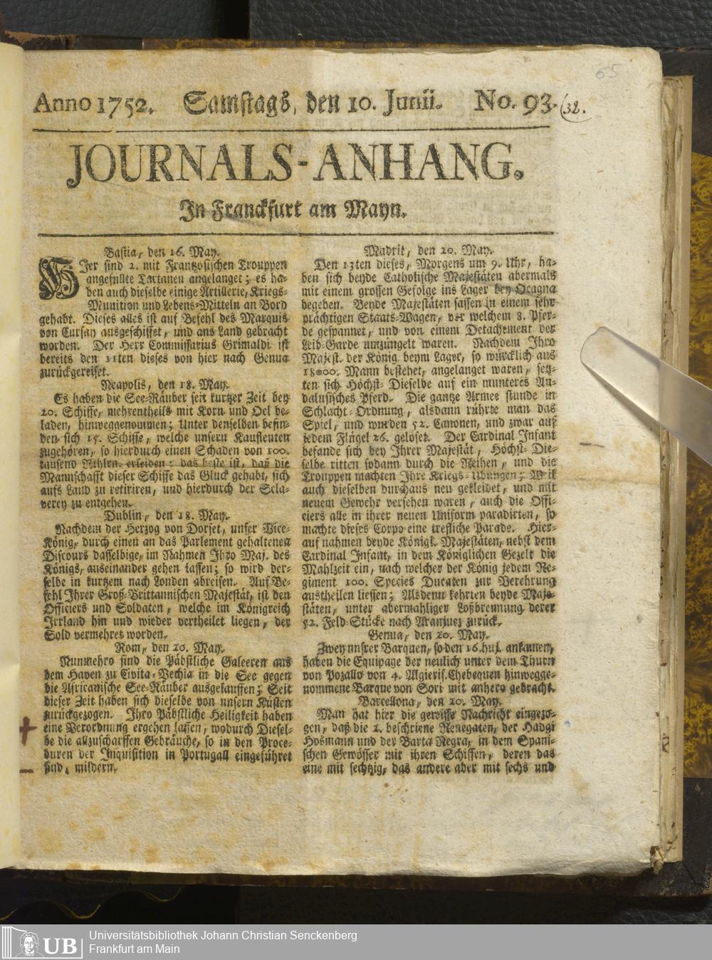 30 (1752) [Nicht-ärztliches Tagebuch: Juni - Dezember 1752]