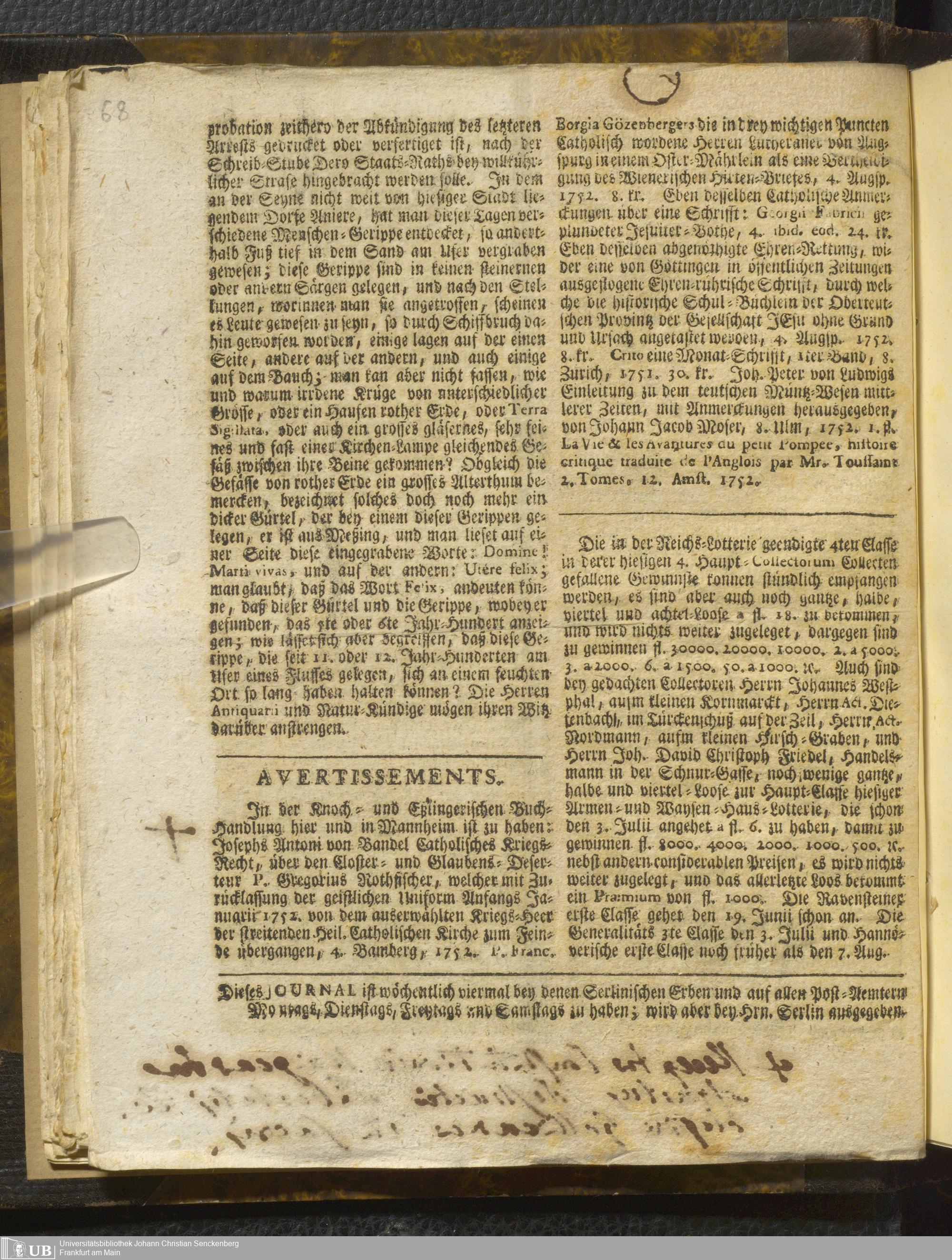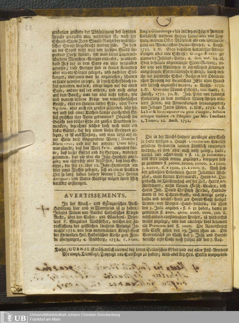30 (1752) [Nicht-ärztliches Tagebuch: Juni - Dezember 1752]