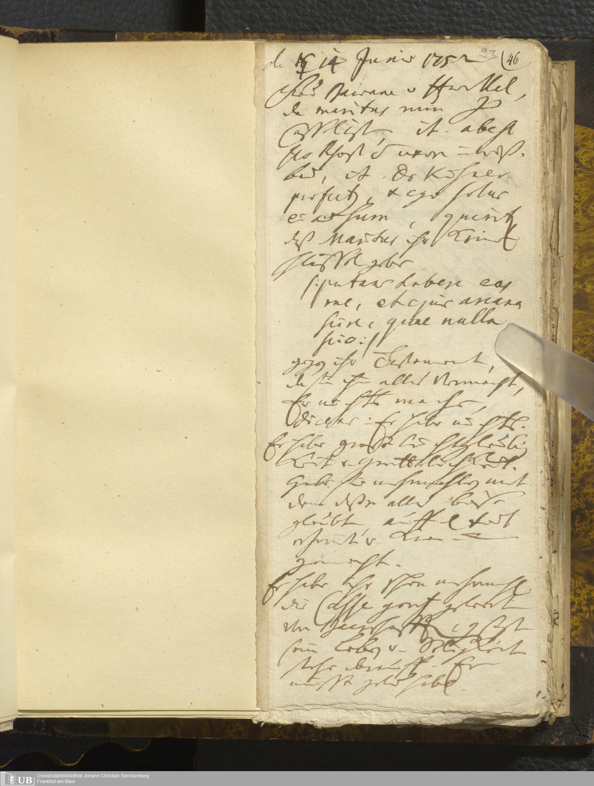 [Nicht-ärztliches Tagebuch: Juni - Dezember 1752]