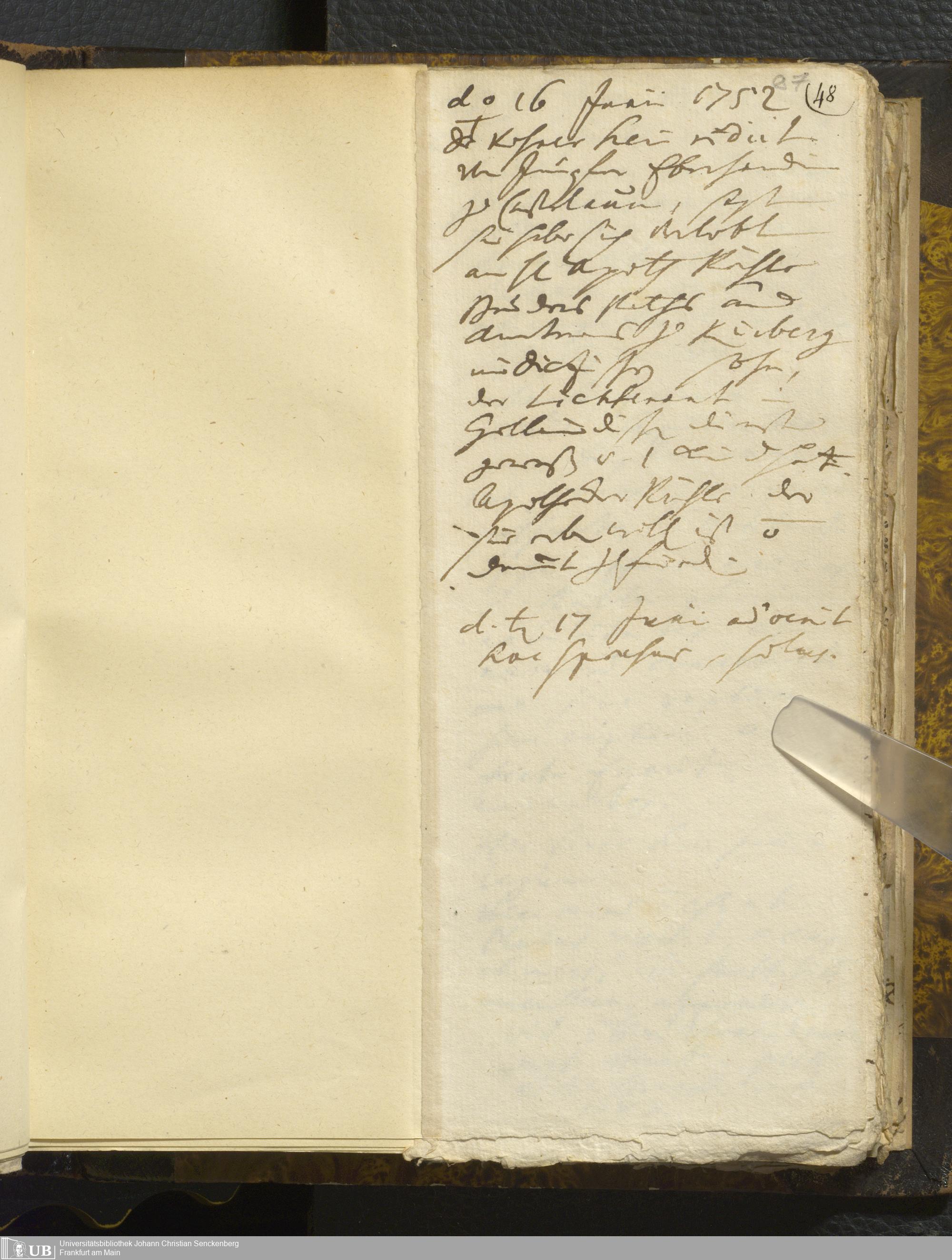 [Nicht-ärztliches Tagebuch: Juni - Dezember 1752]
