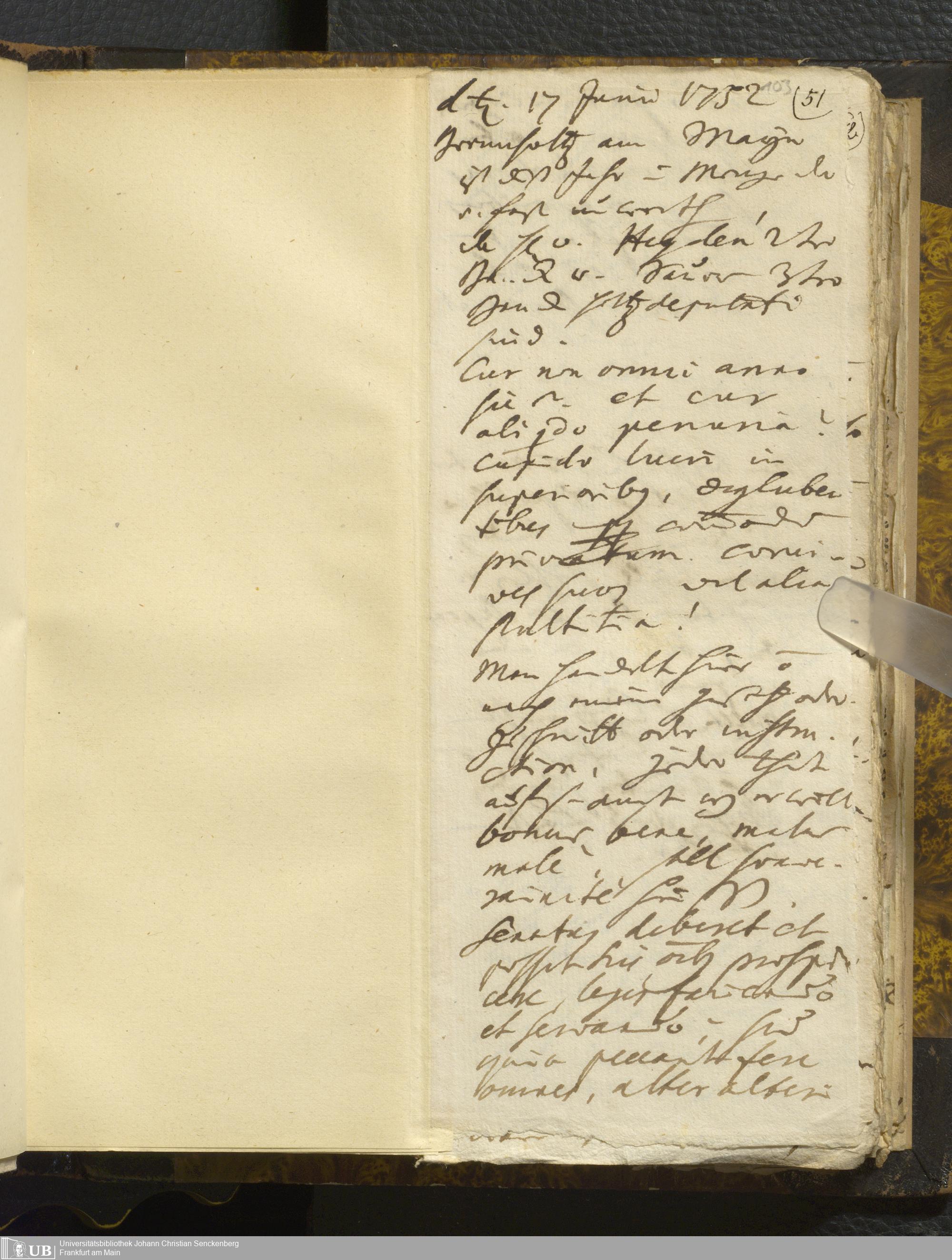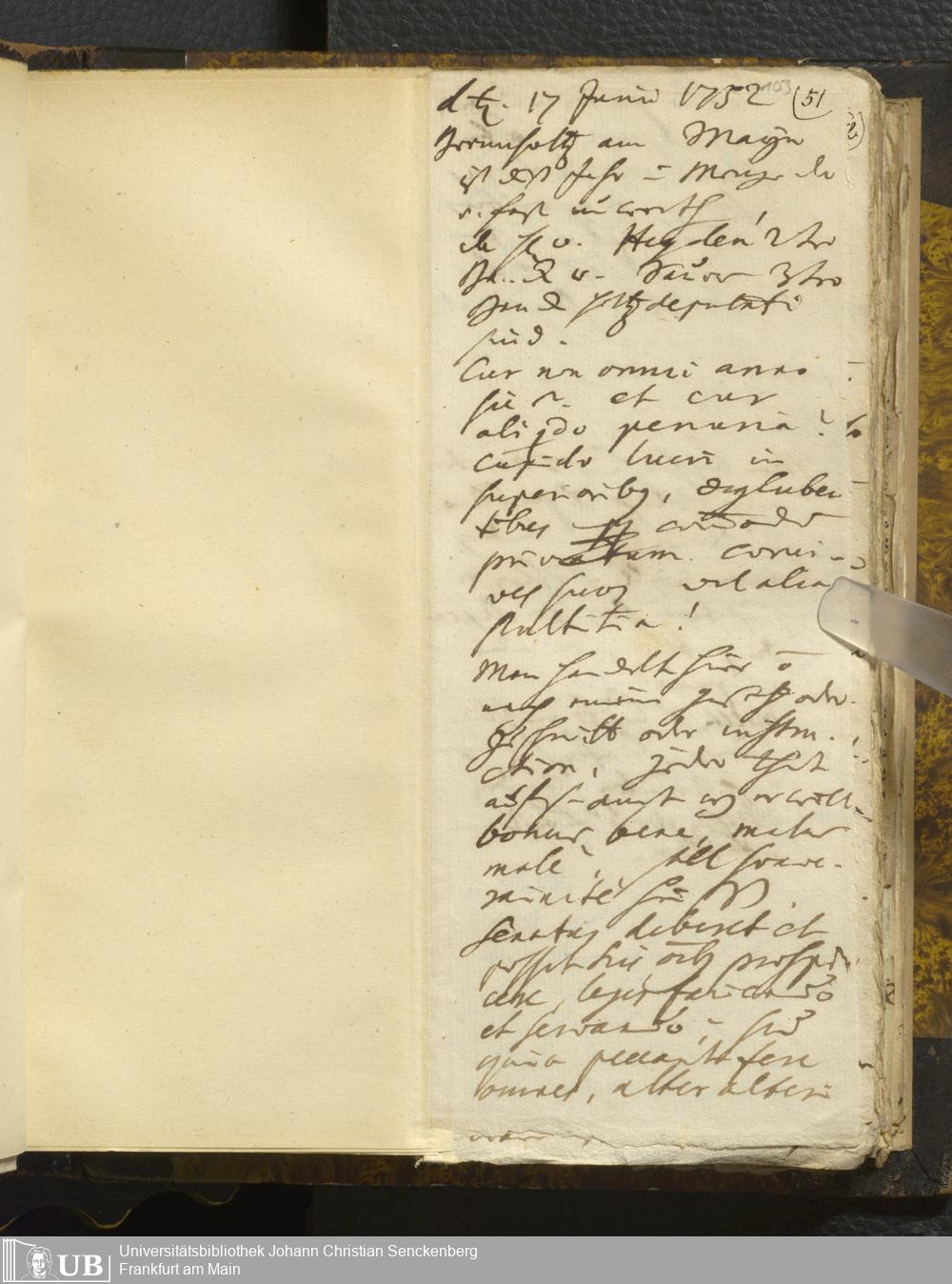 [Nicht-ärztliches Tagebuch: Juni - Dezember 1752]