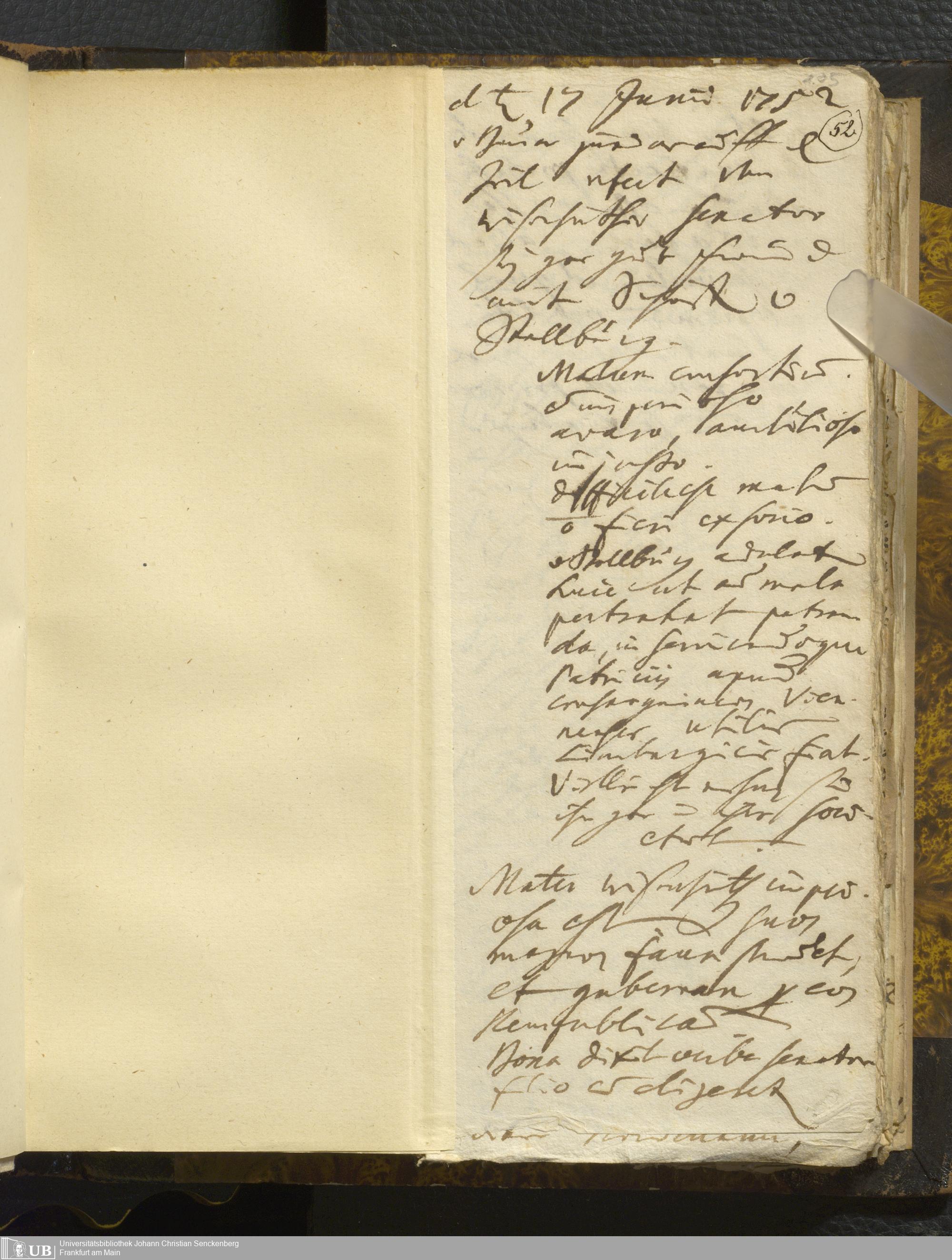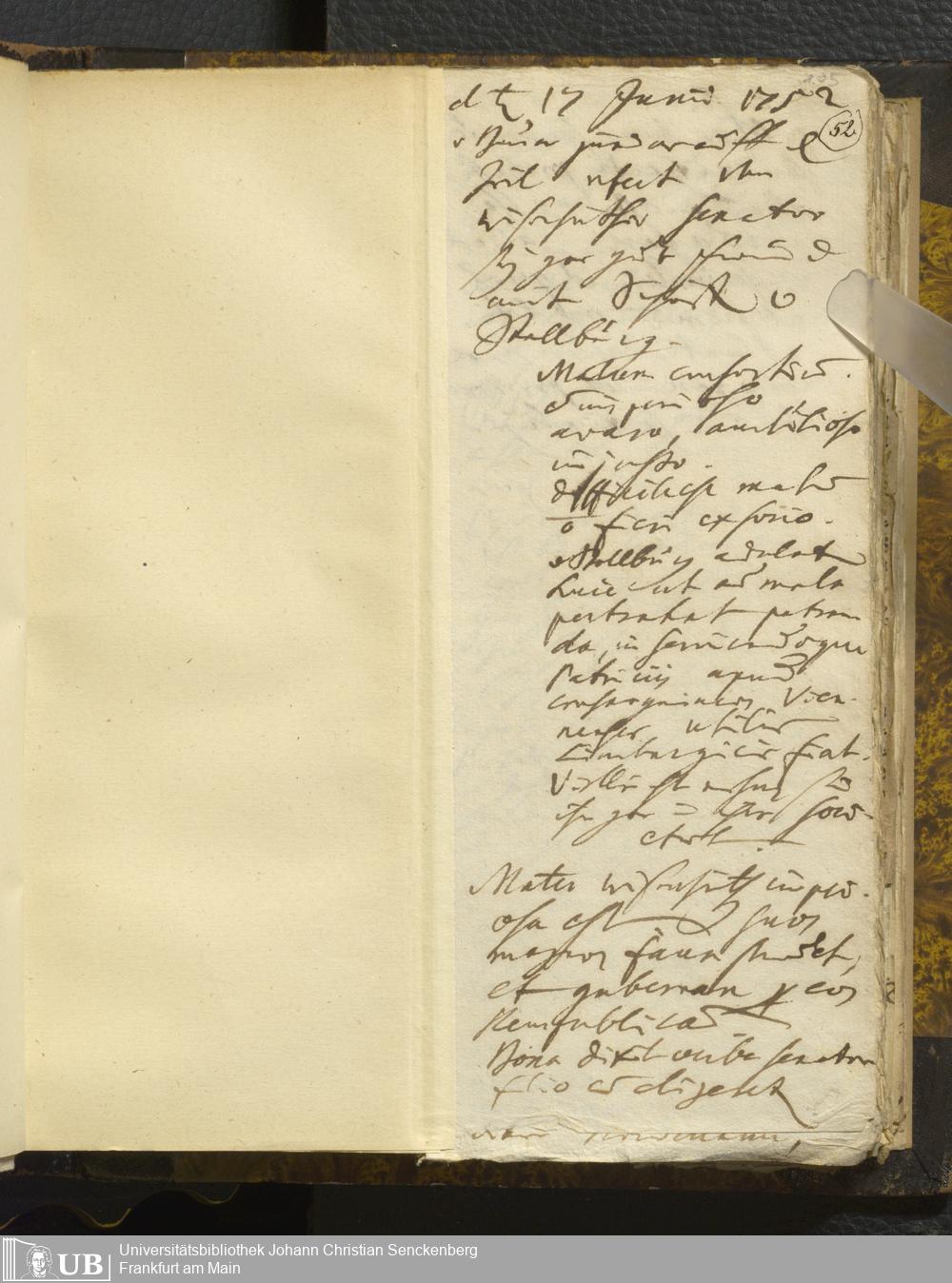 [Nicht-ärztliches Tagebuch: Juni - Dezember 1752]