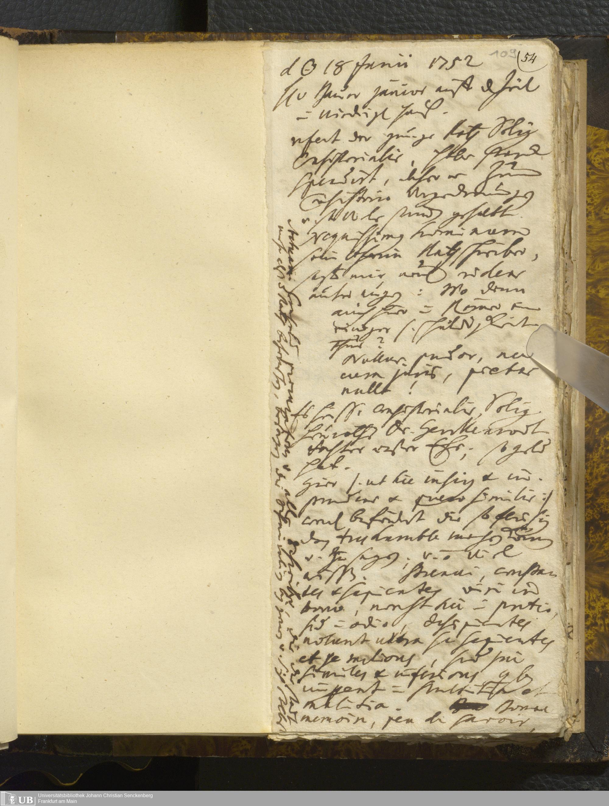 [Nicht-ärztliches Tagebuch: Juni - Dezember 1752]