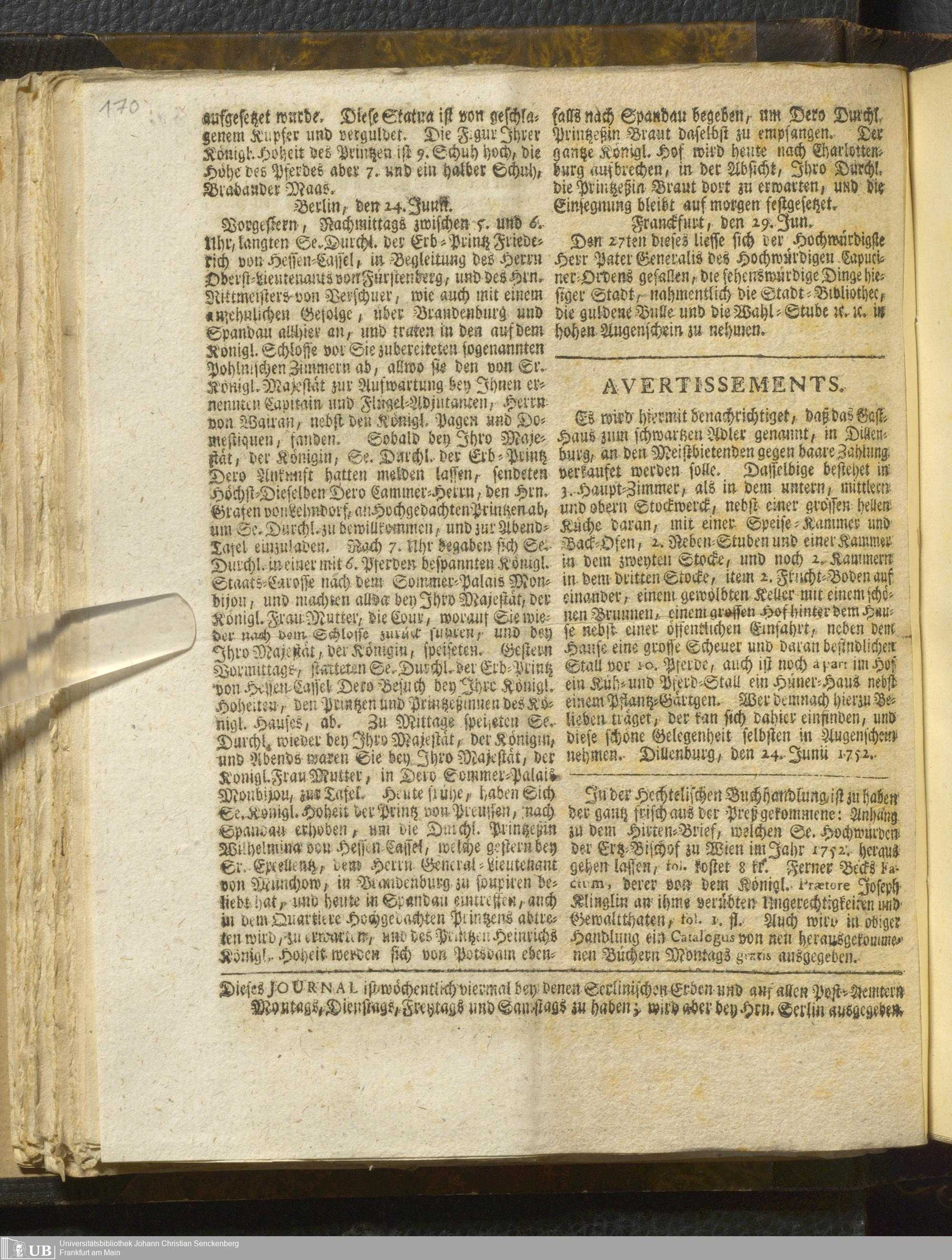 30 (1752) [Nicht-ärztliches Tagebuch: Juni - Dezember 1752]