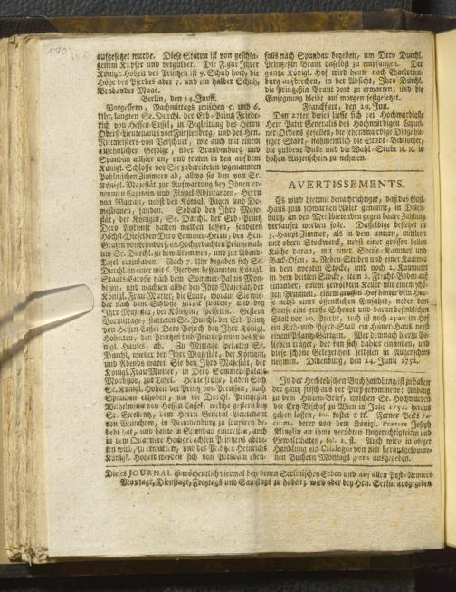 [Nicht-ärztliches Tagebuch: Juni - Dezember 1752]